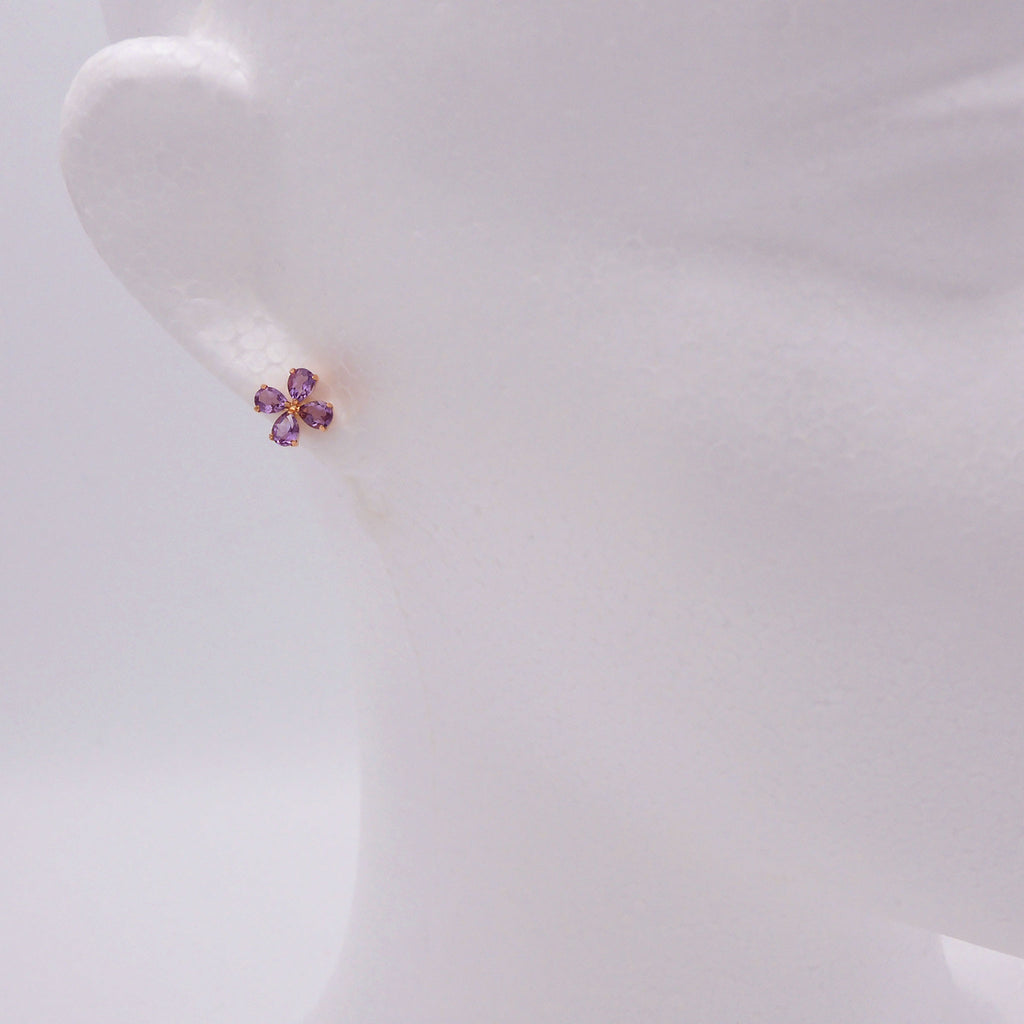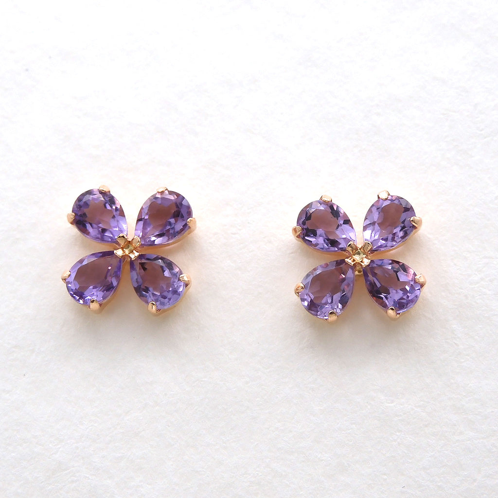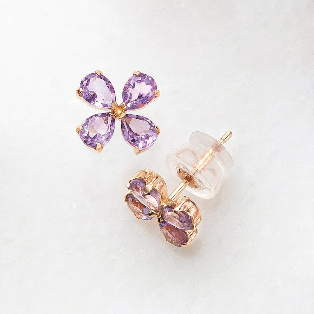 ペアシェイプのアメシストを花びらに見立てたフラワーモチーフのピアスです。