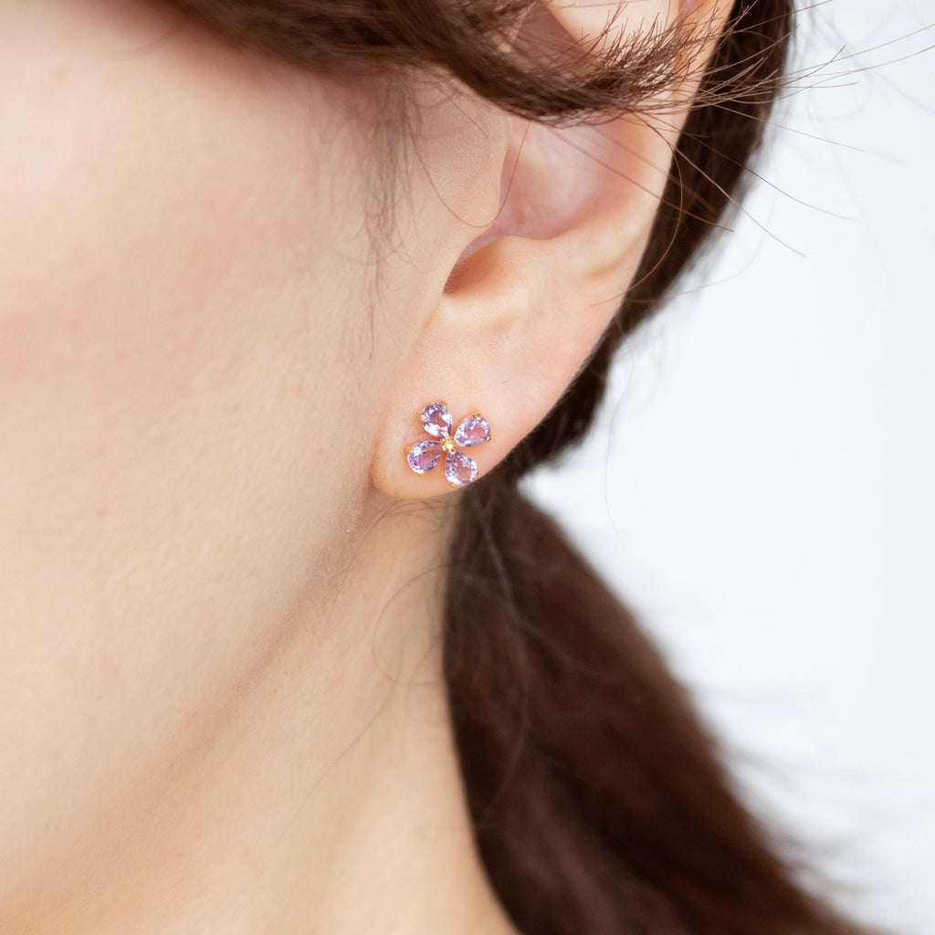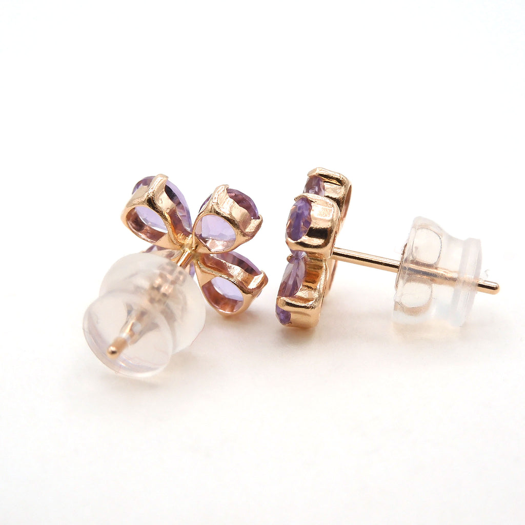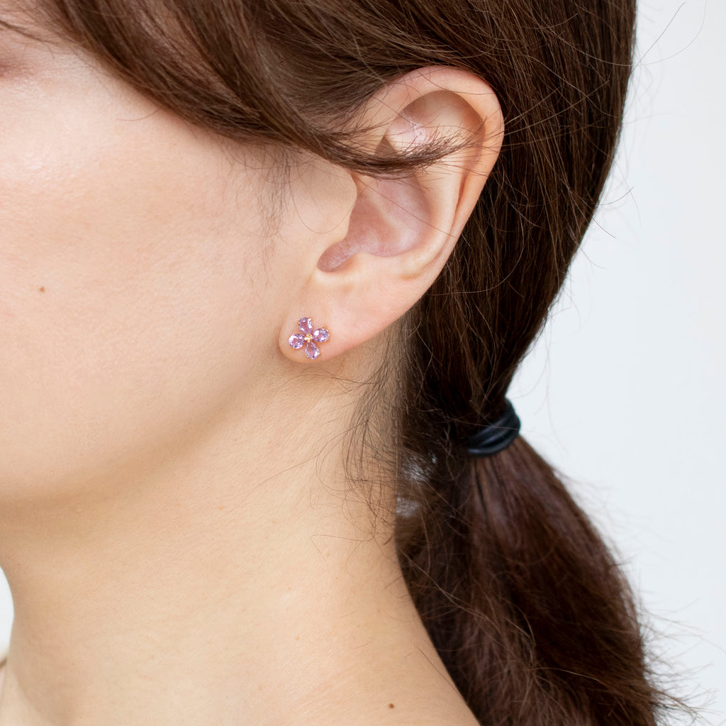 ペアシェイプのアメシストを花びらに見立てたフラワーモチーフのピアスです。