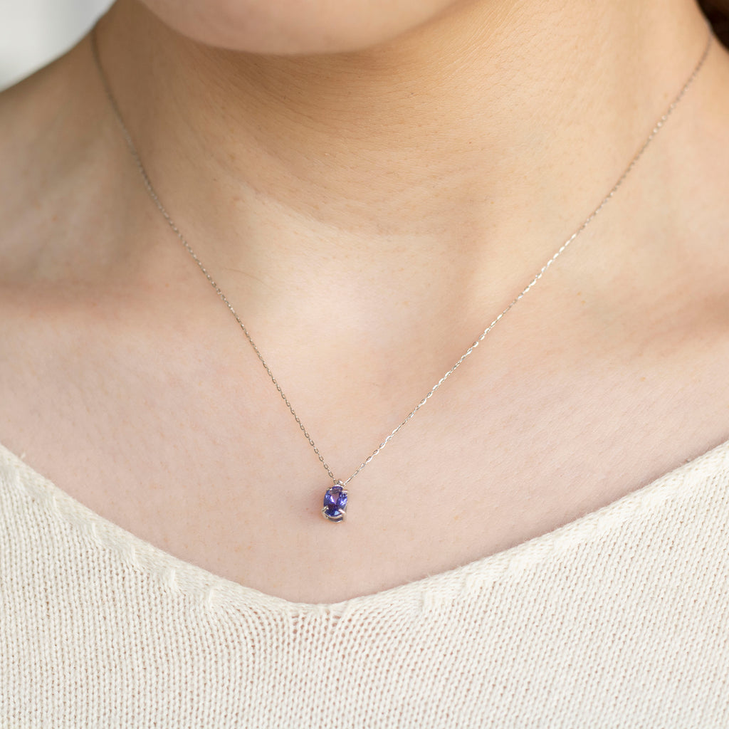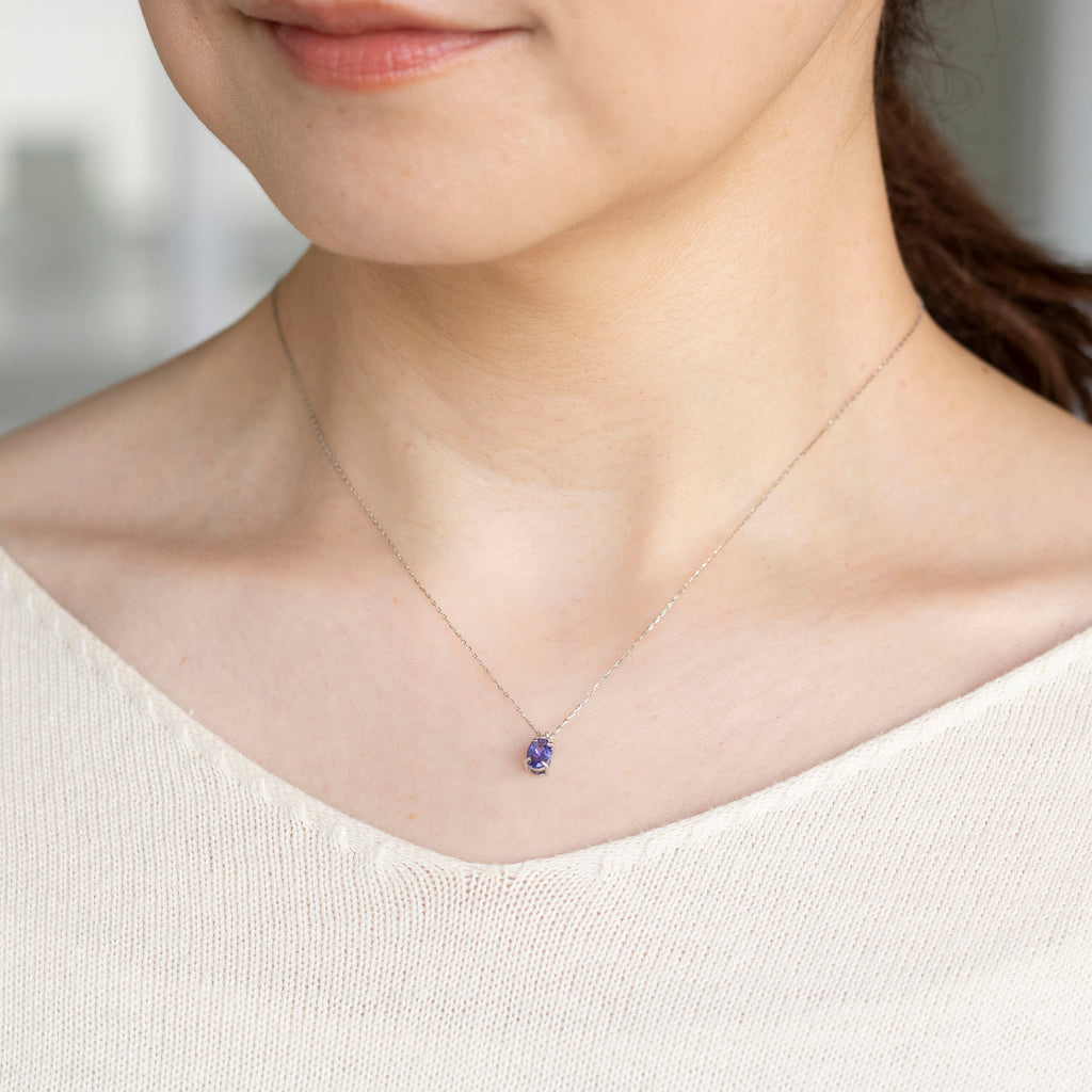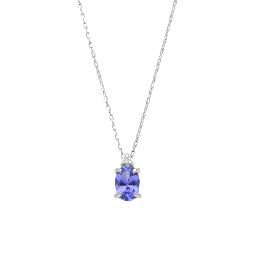 ほどよい大きさの0.4ctのオーバルシェイプのタンザナイトをシンプルなデザインのネックレスに仕立てました。