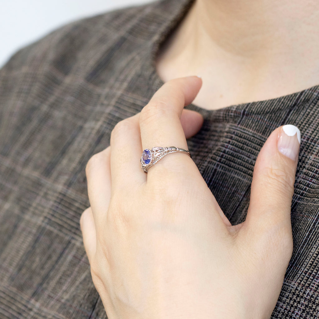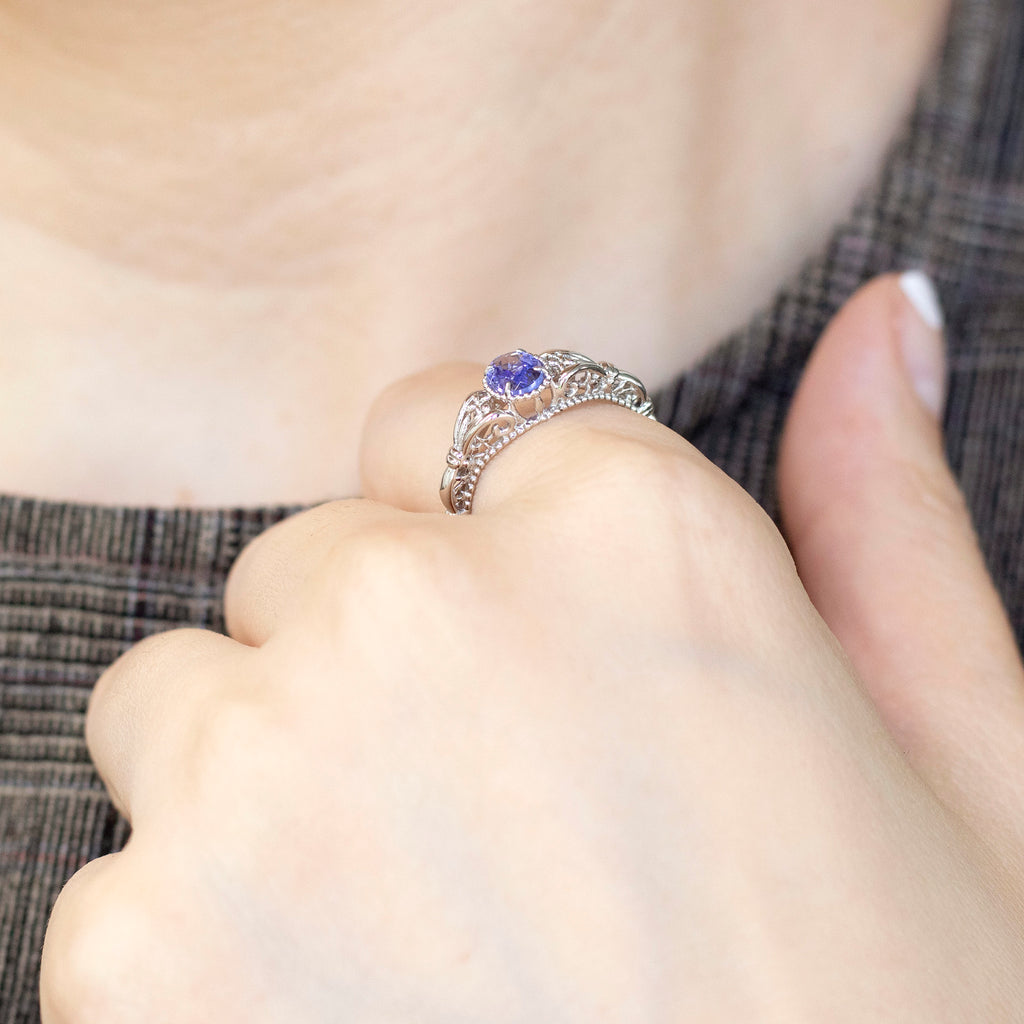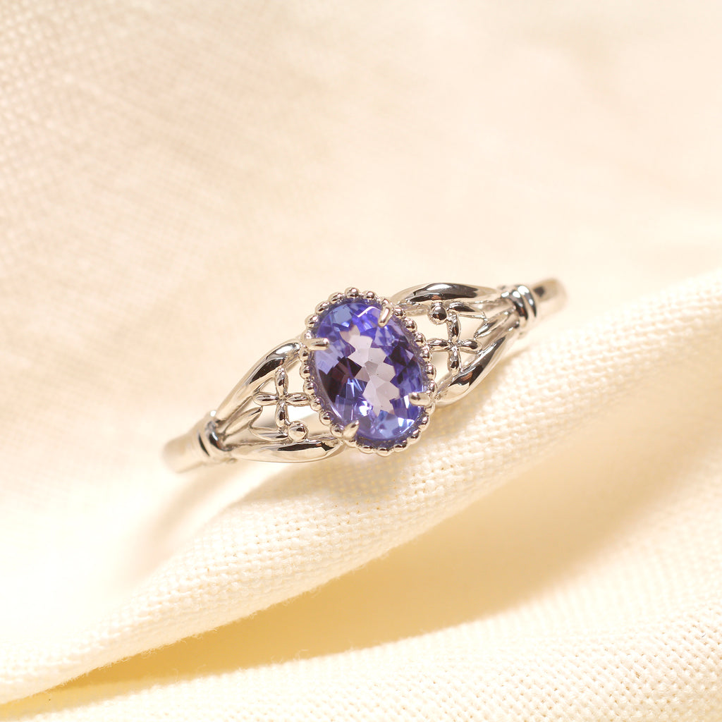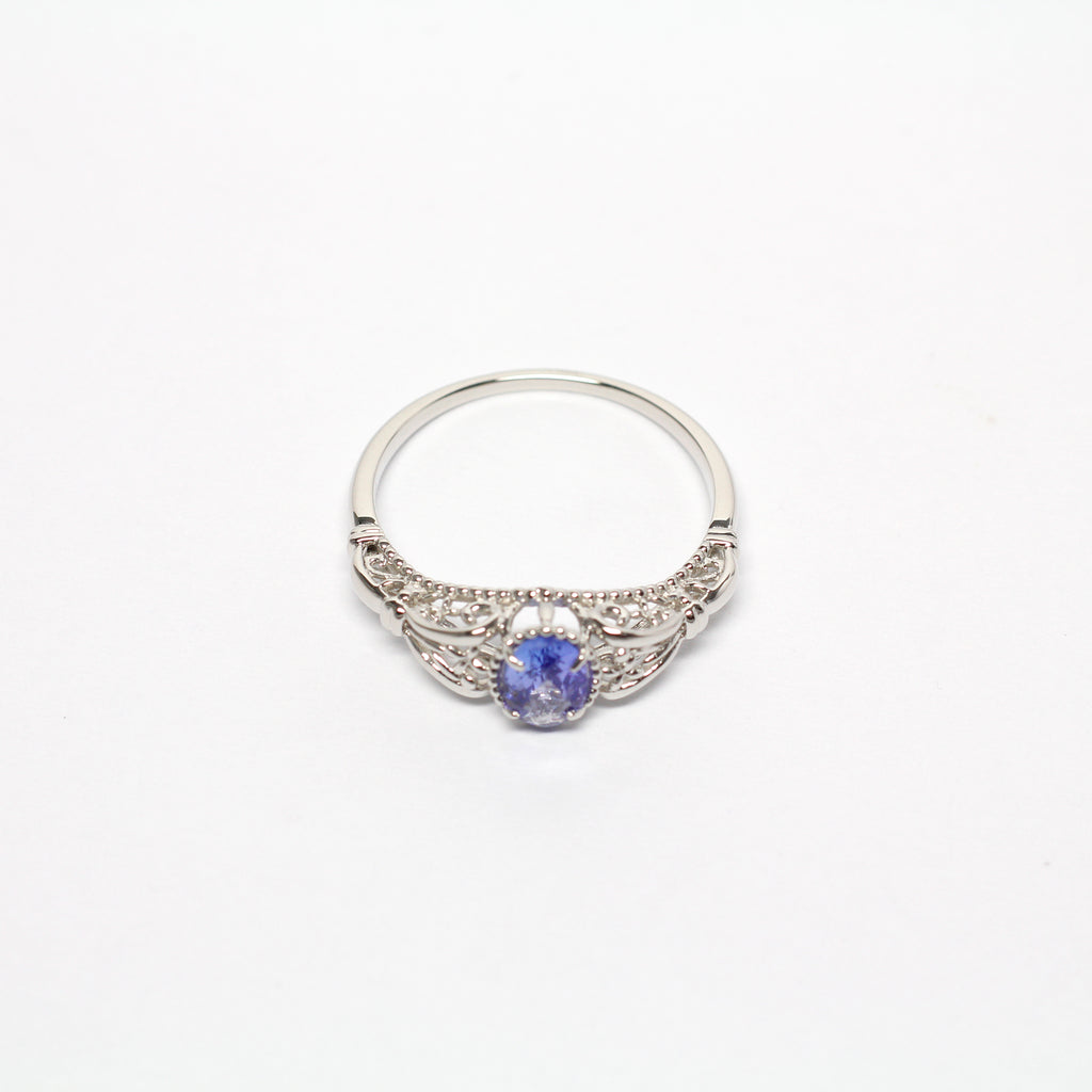 クラシカルな雰囲気のリングに独特の青紫色が美しいタンザナイトをセットしました。