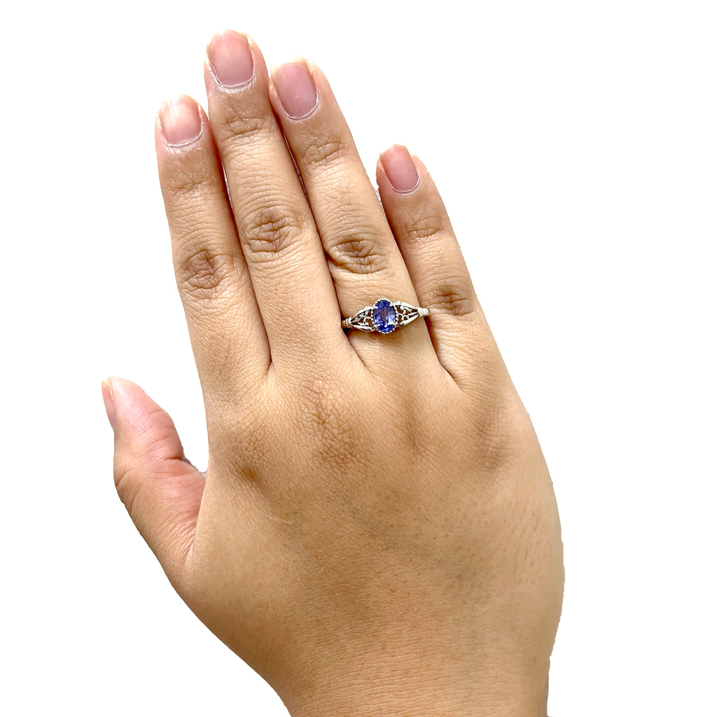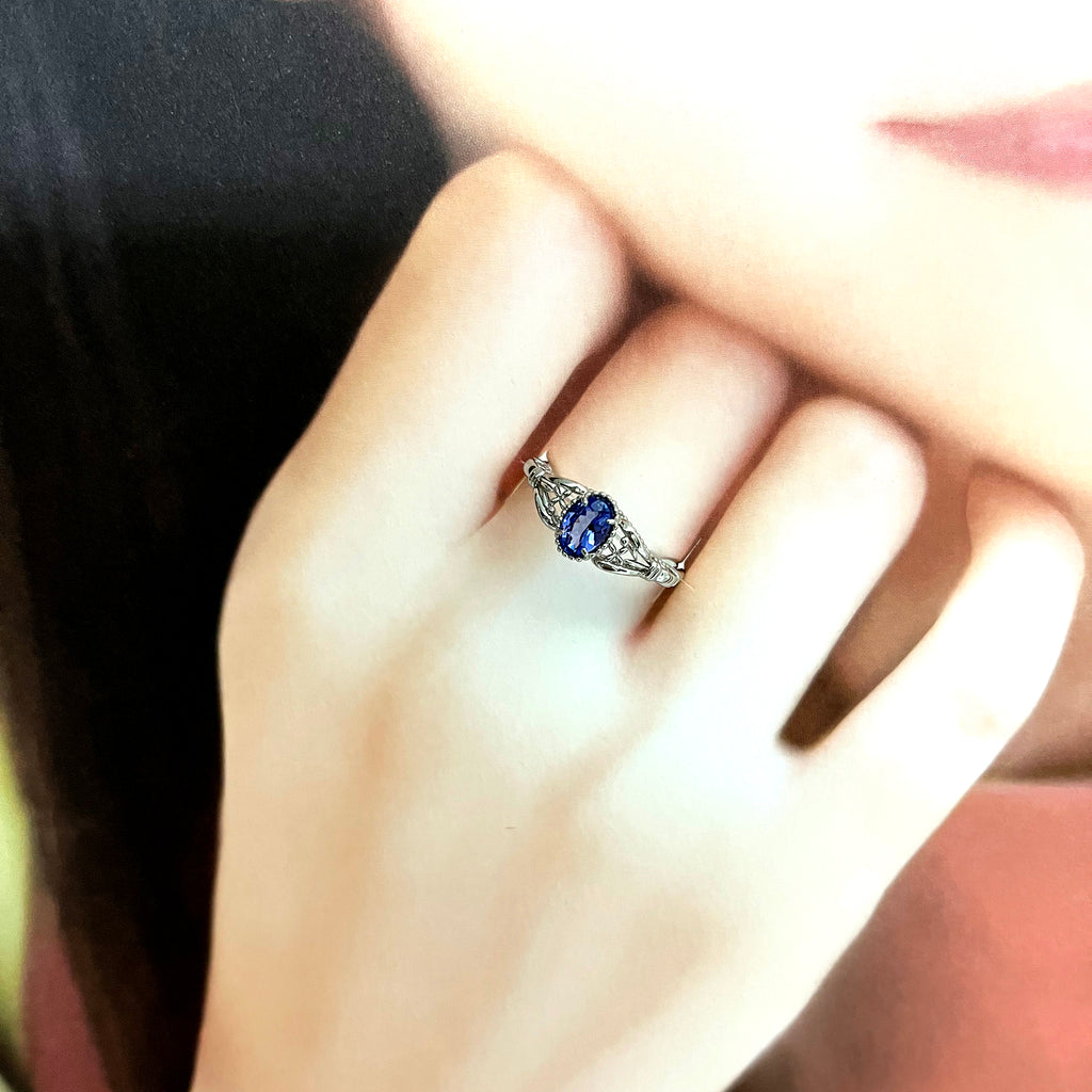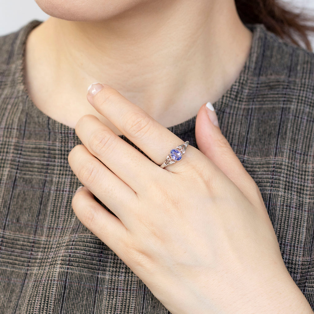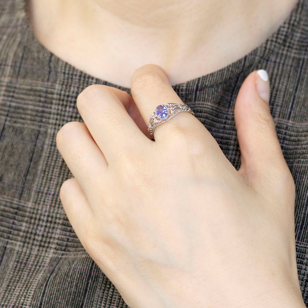 クラシカルな雰囲気のリングに独特の青紫色が美しいタンザナイトをセットしました。