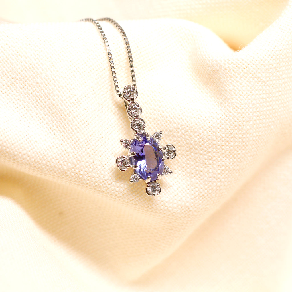 12月の誕生石でもあるタンザナイトのネックレスです。