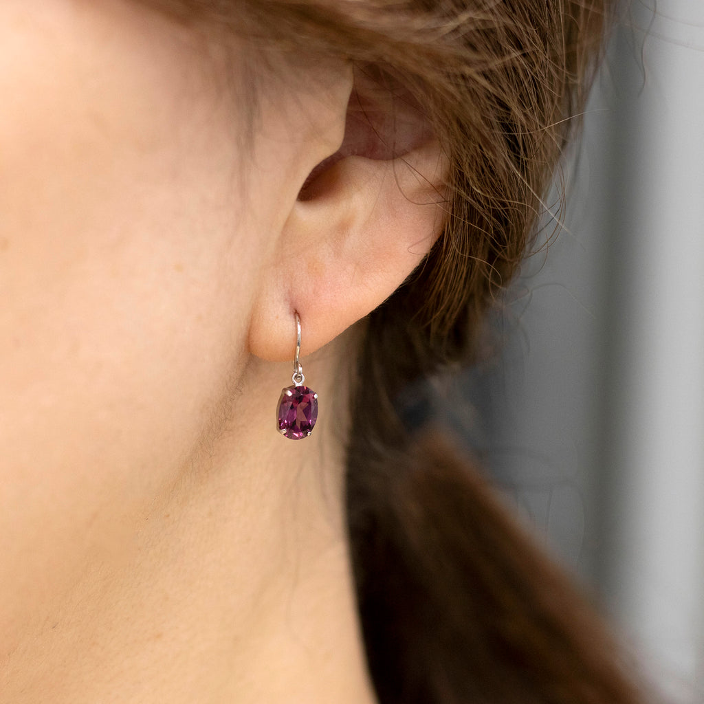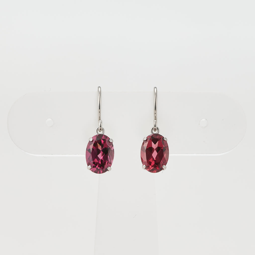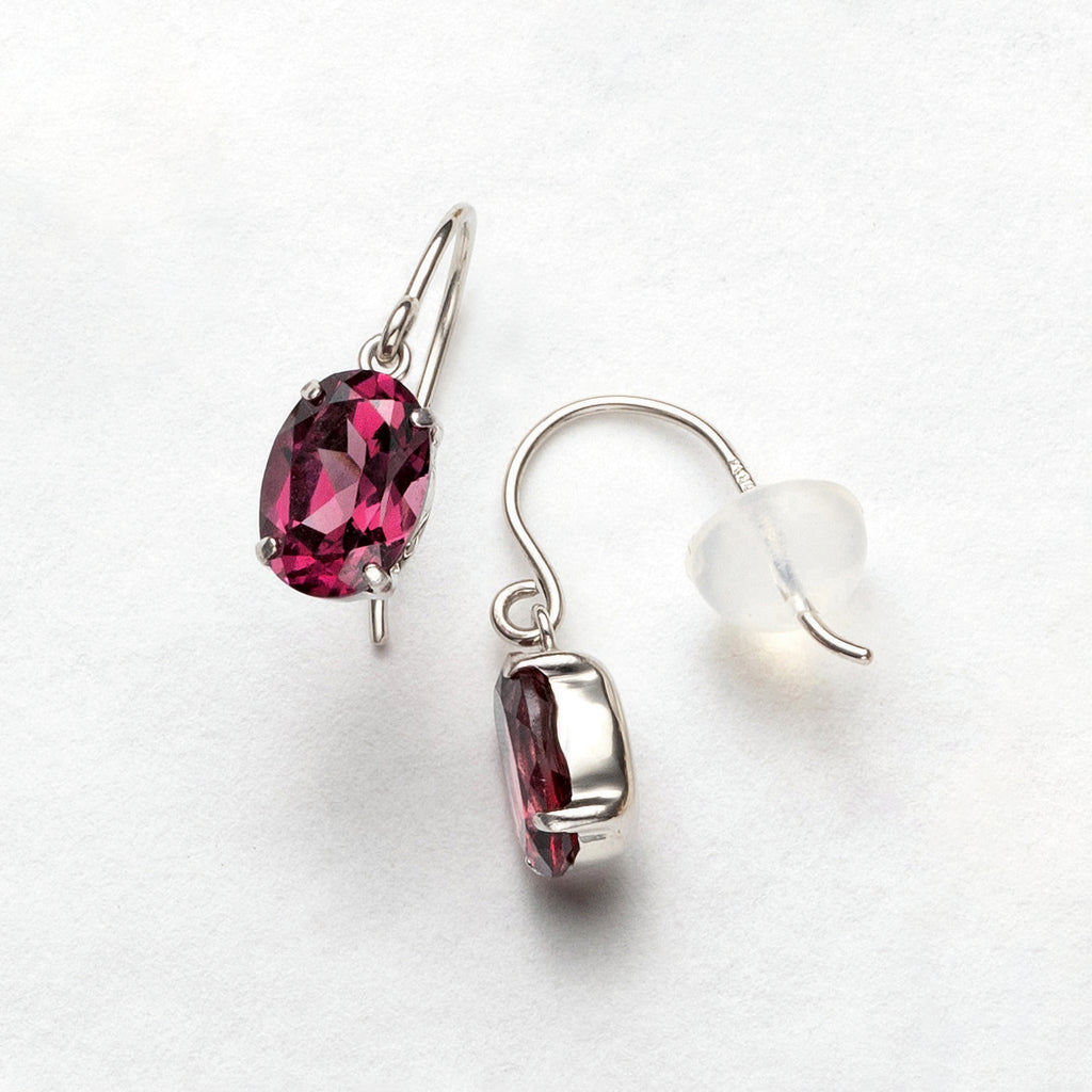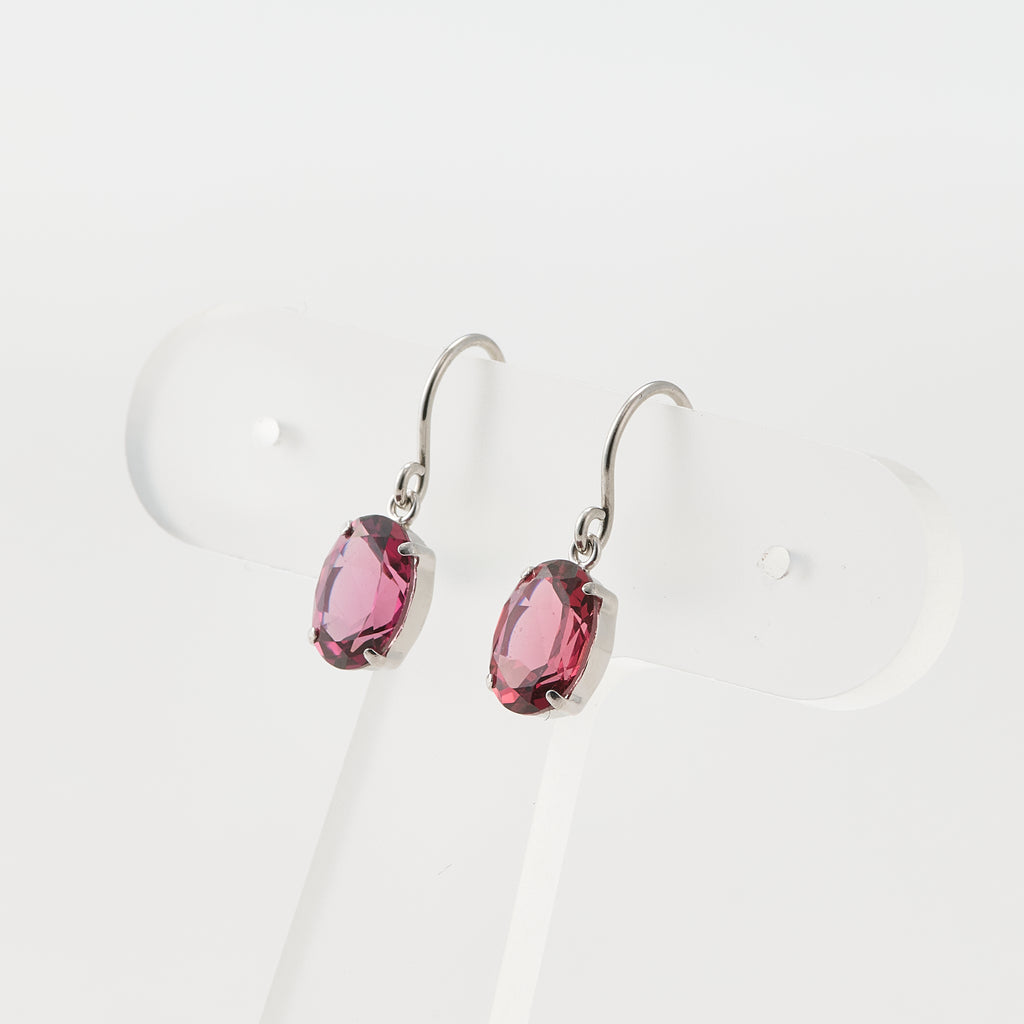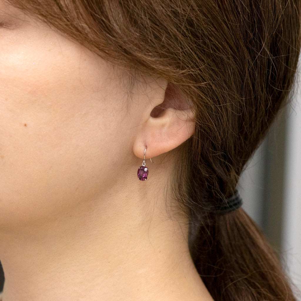 紫がかった赤色が美しいガーネットを厳選してピアスに仕立てました。このガーネットの微妙で美しい色が引き立つプラチナ製です。