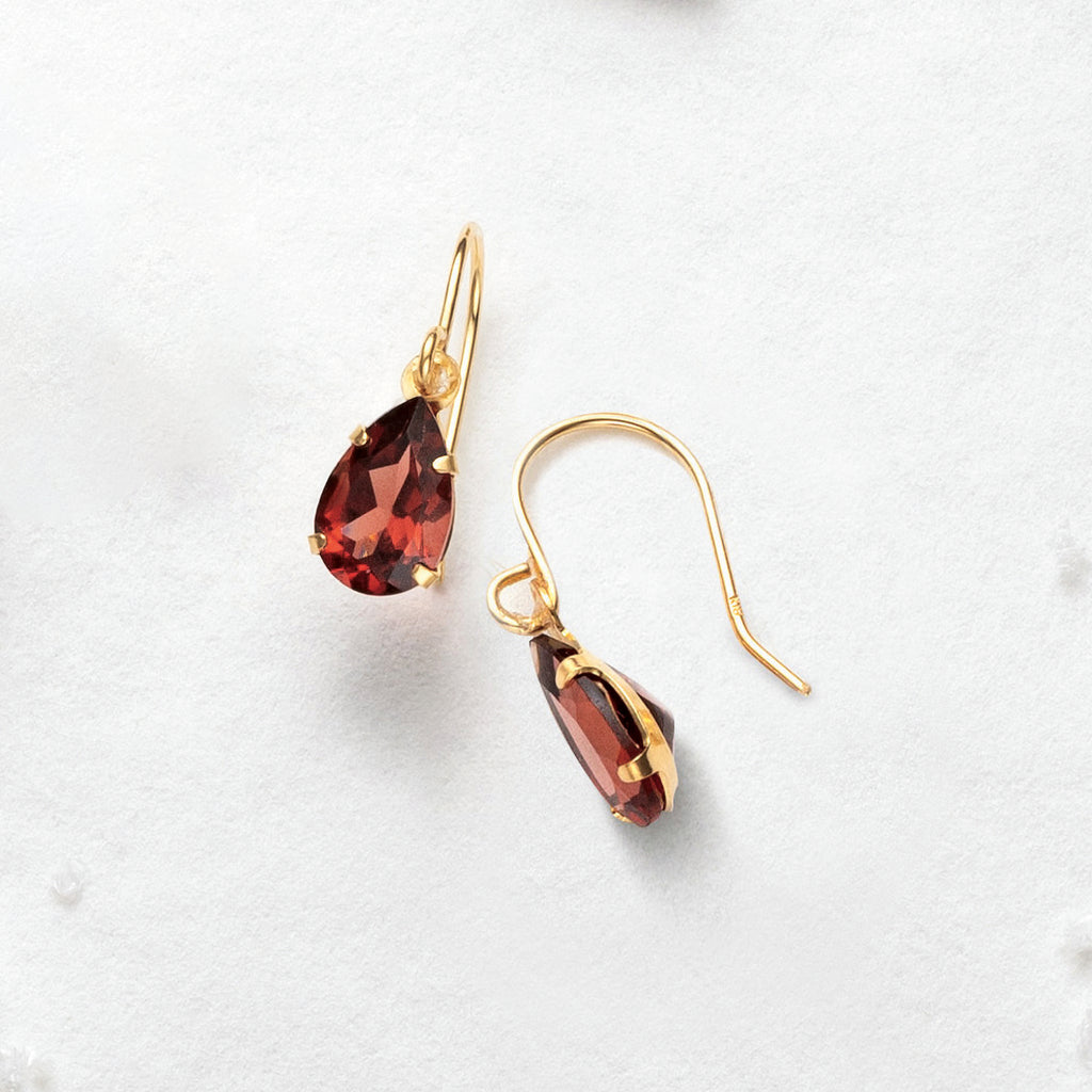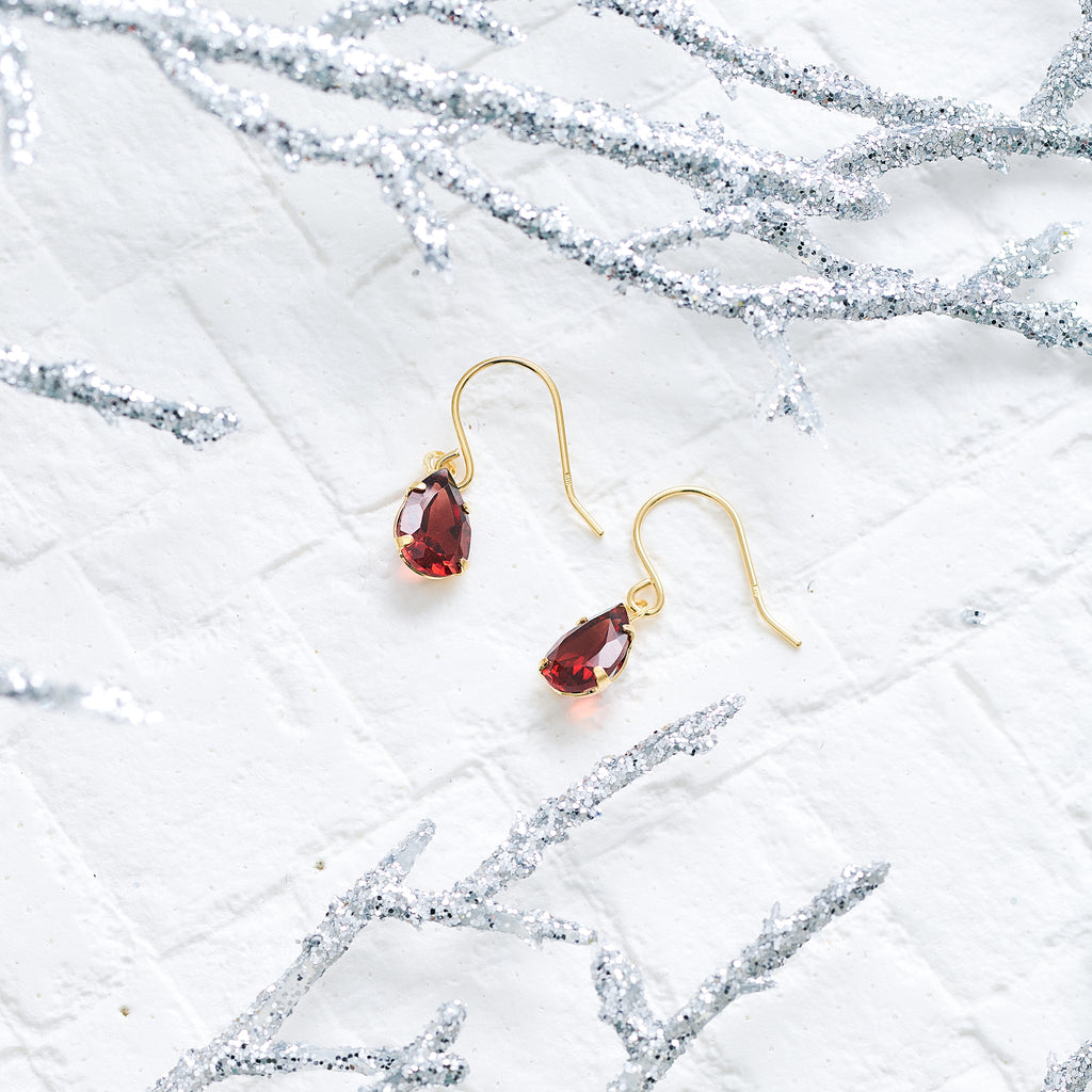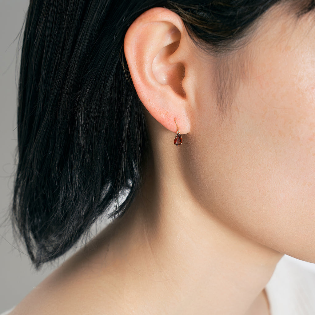 雫形にカットされたガーネットが、フック式の金具の下でよく揺れてキラキラと輝きます。