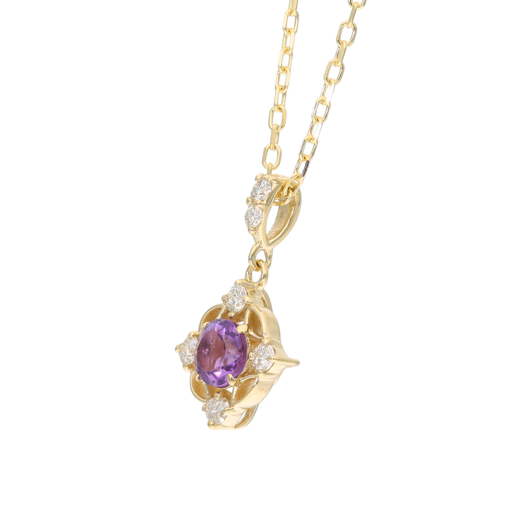 アンティーク調の繊細なデザインのネックレスにアメシストをセットしました。
