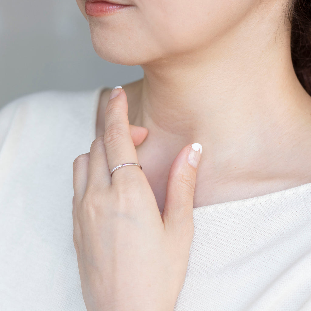 輝きのよいメレダイヤモンドをサイズグラデーションに並べました。