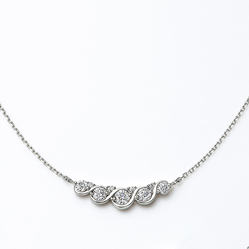 大きめのダイヤを取り囲んだ曲線が優雅な印象のネックレス。