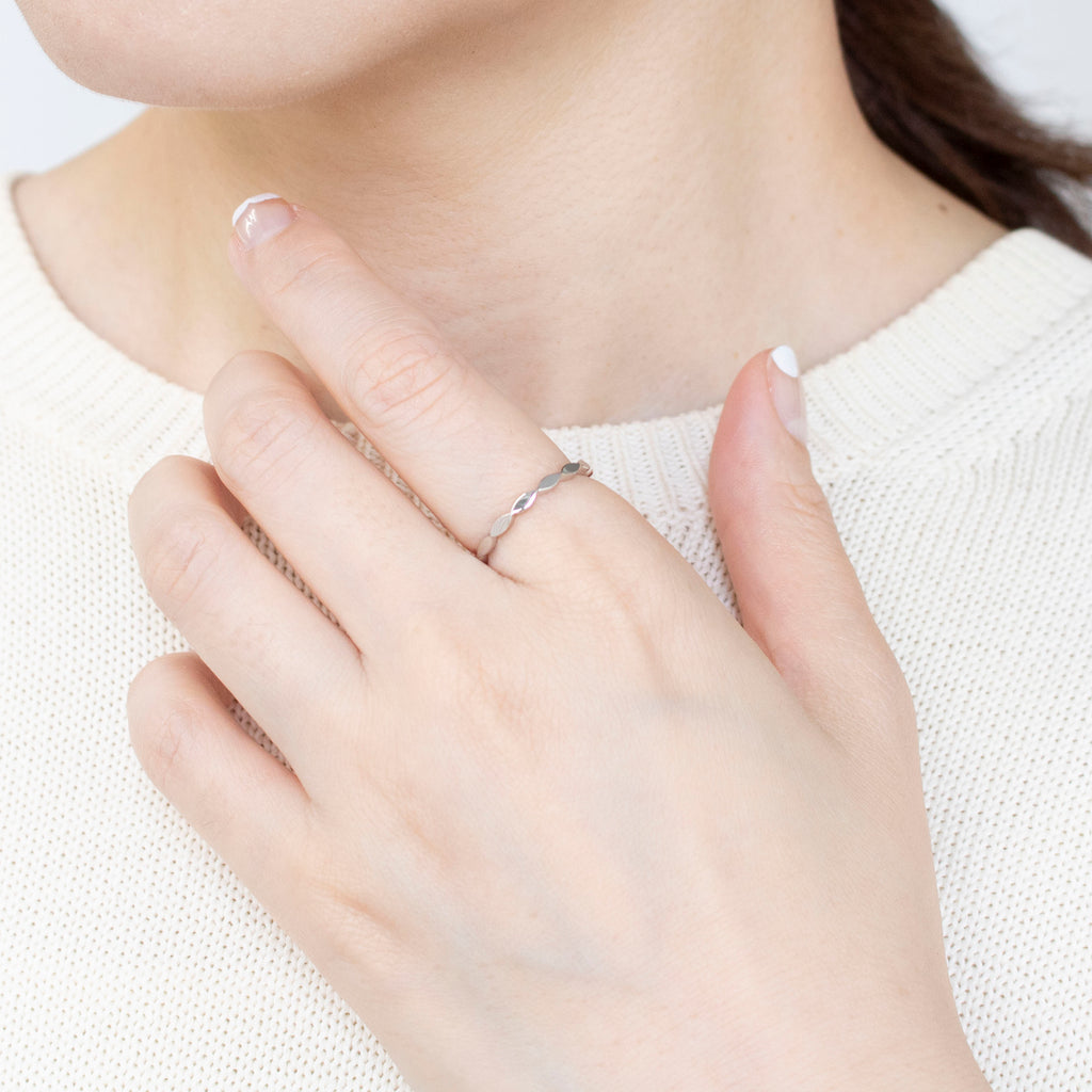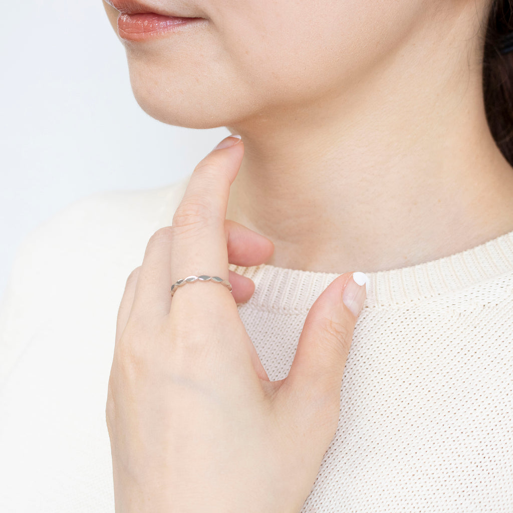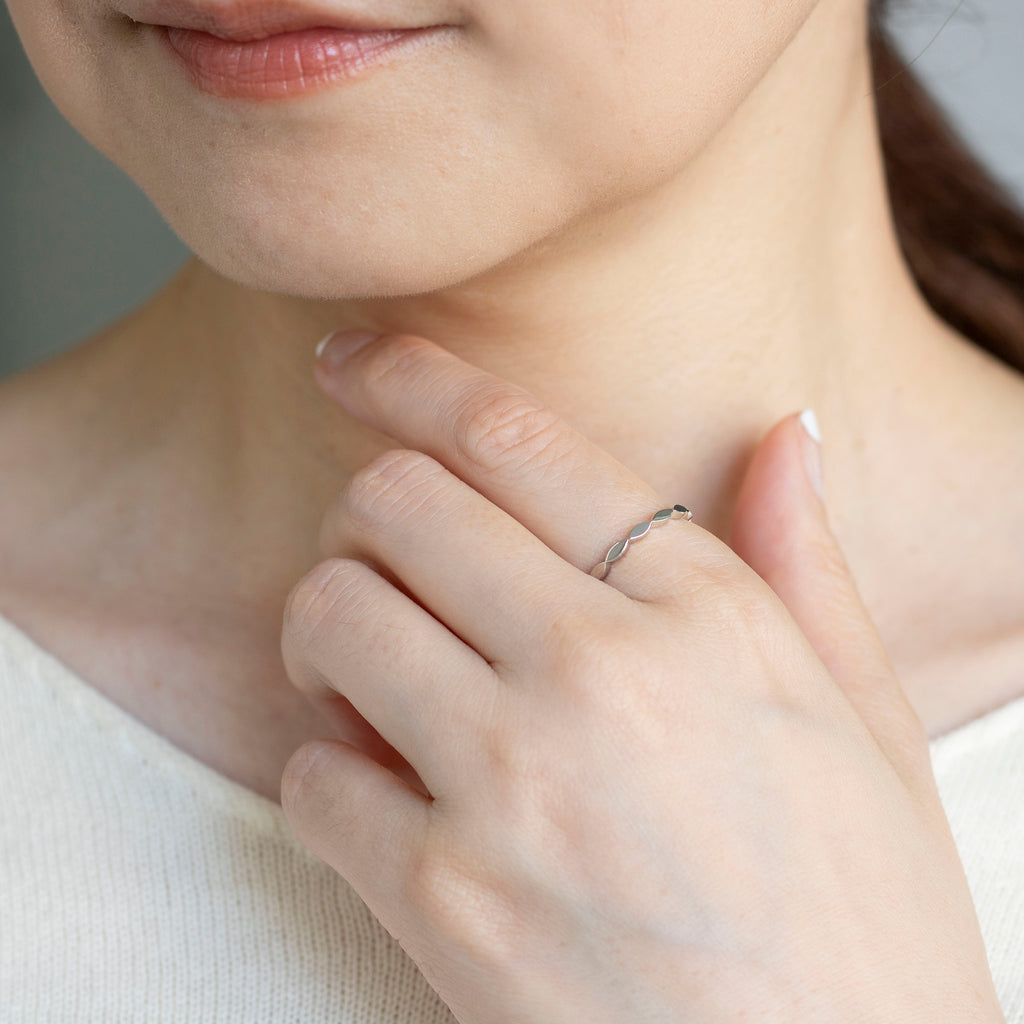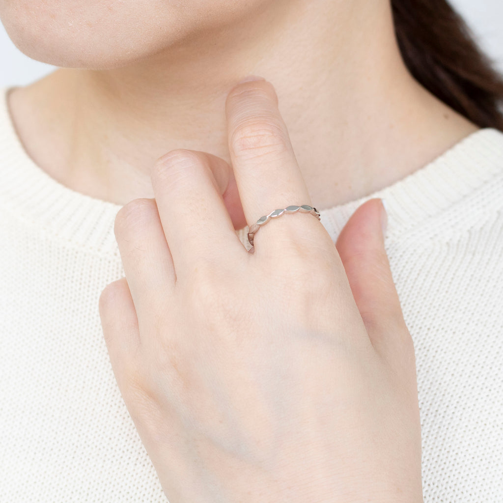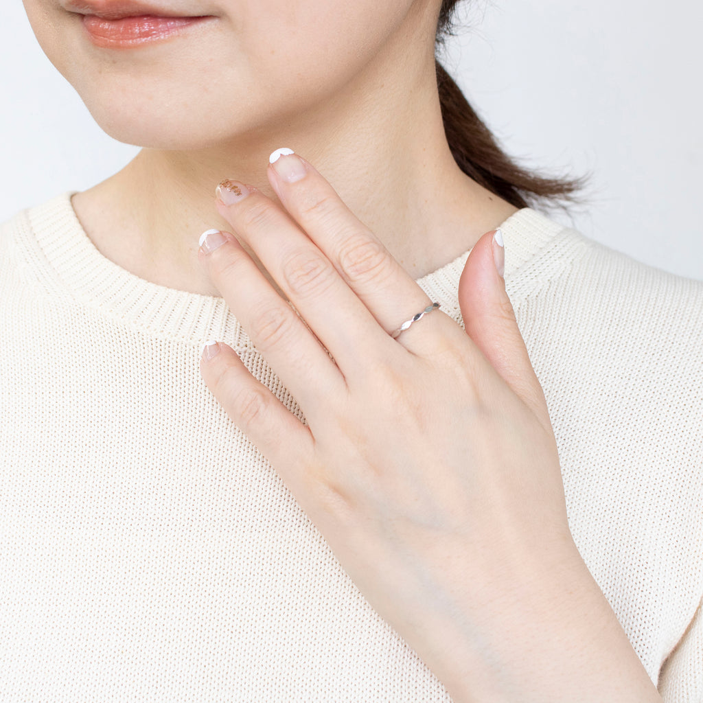 繊細ながらもしっかりとしたつくりです。お手持ちのリングとの重ね着けにもおすすめです。