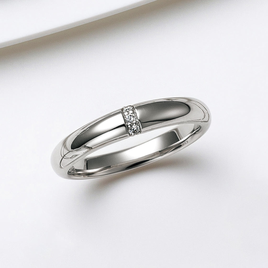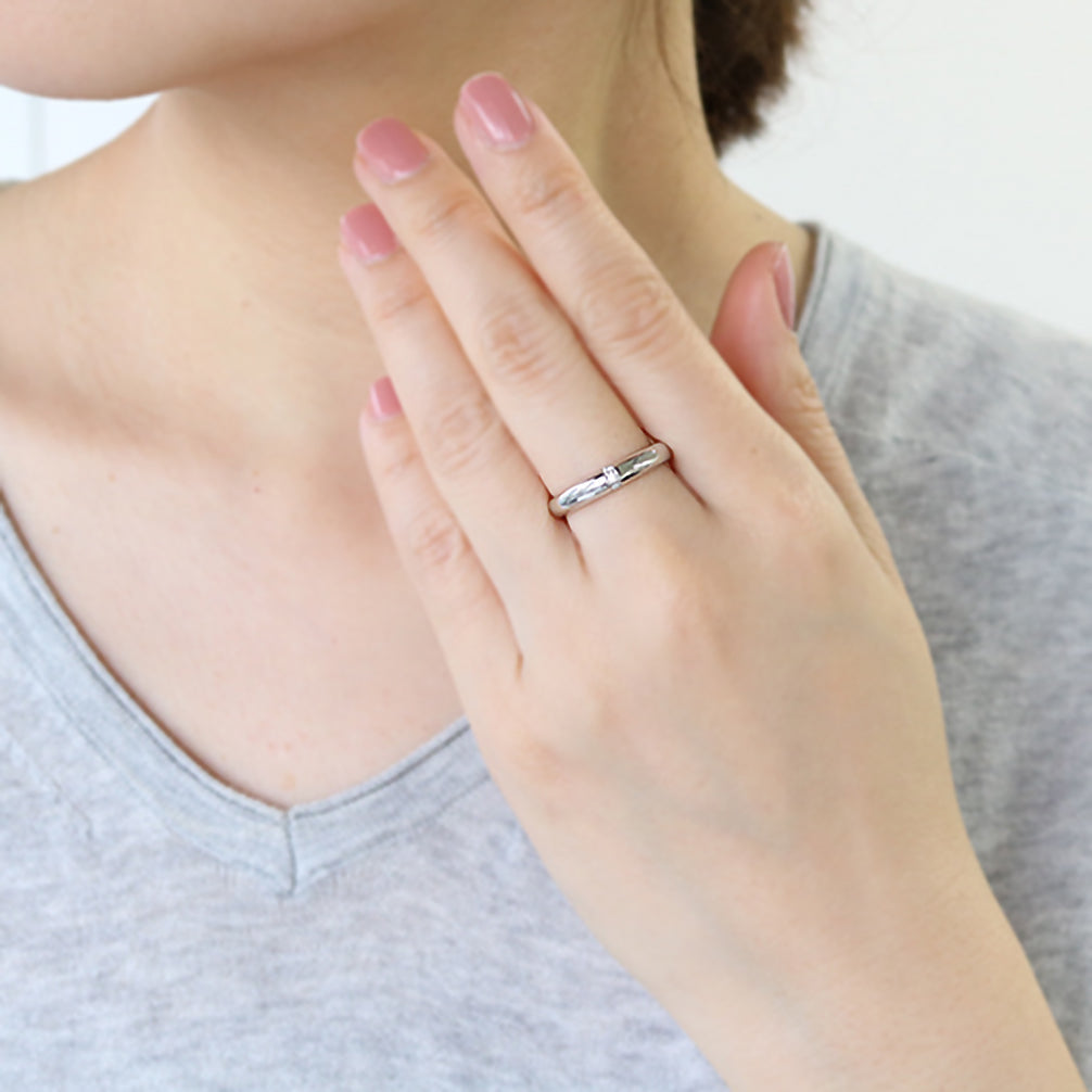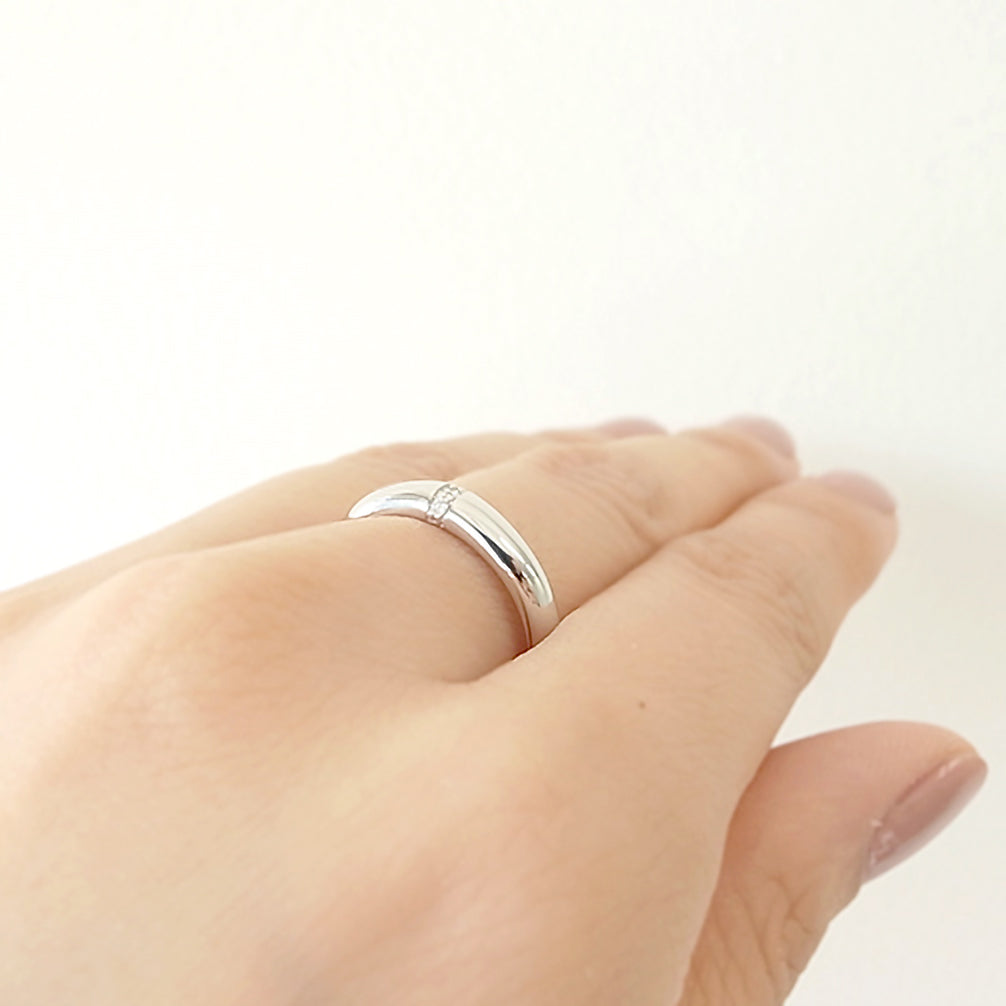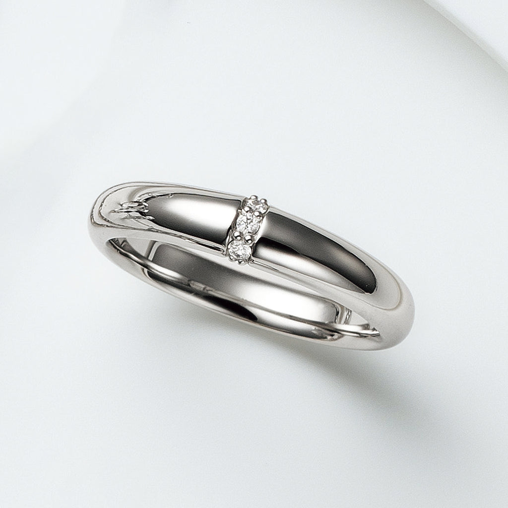 厚みのあるしっかりとしたつくりです。センターには品よくダイヤをあしらいました。