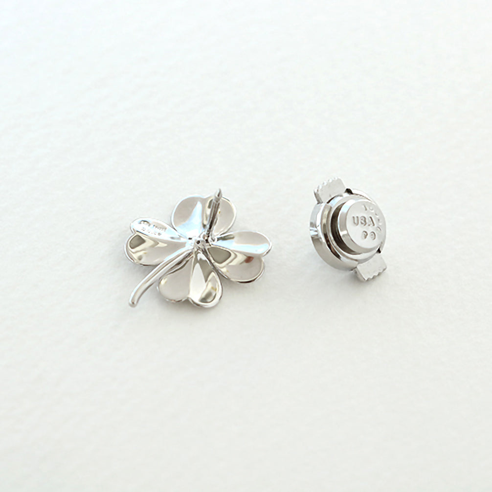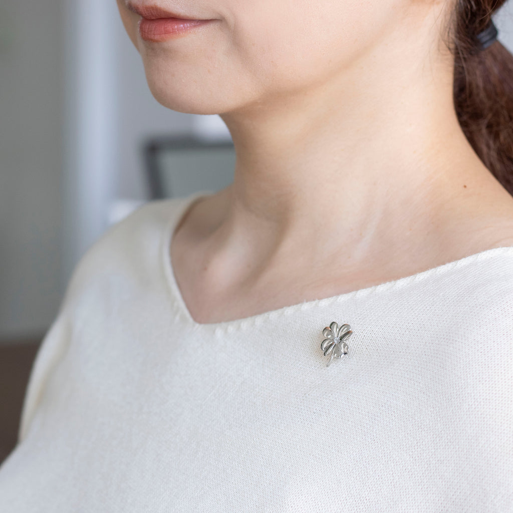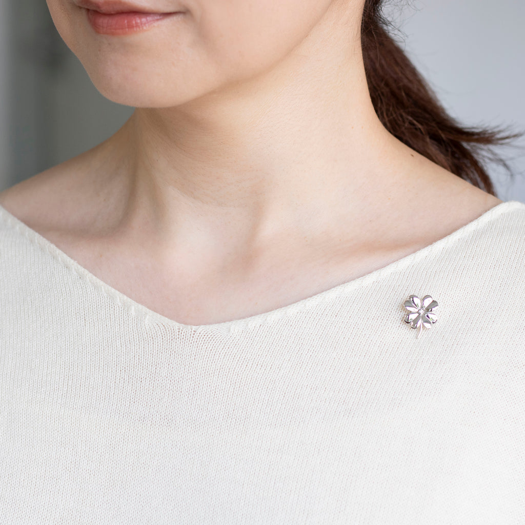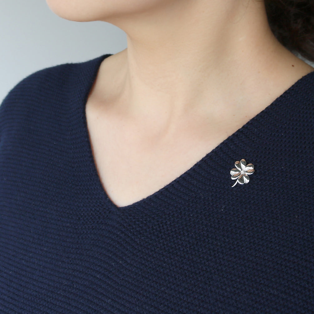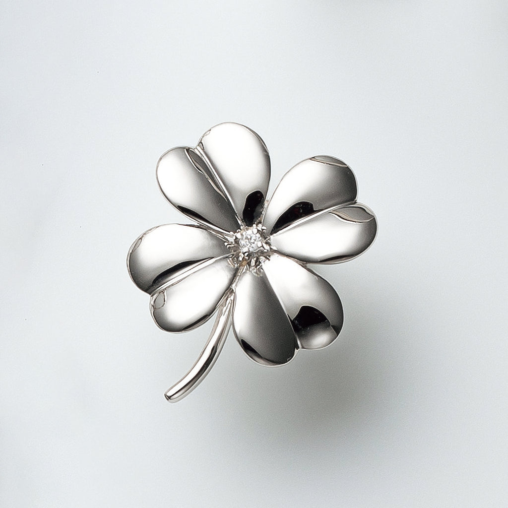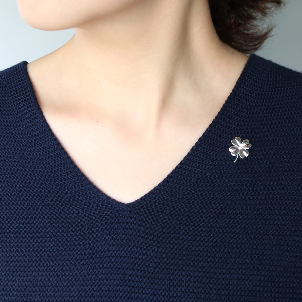 鏡面仕上げによる輝きが見事な四つ葉のクローバーのブローチ。
