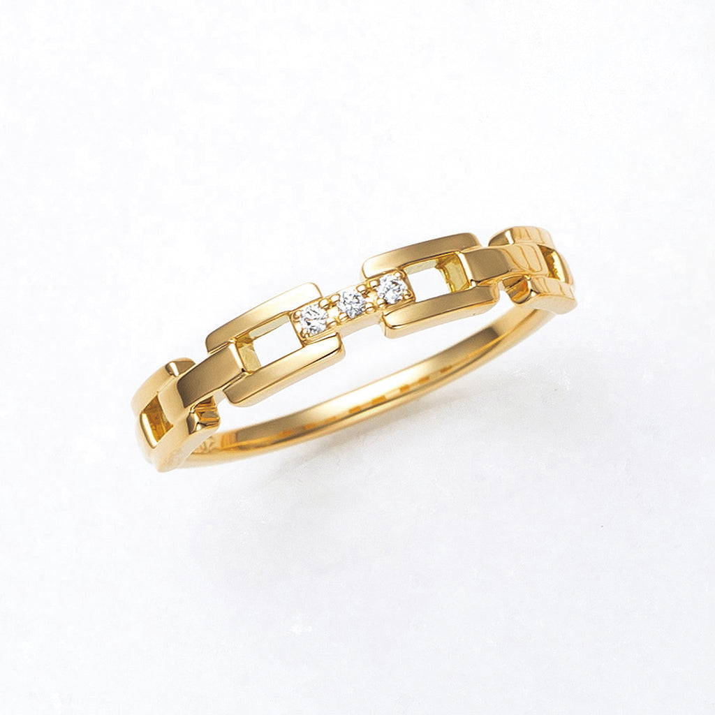 かっちりとしたシェイプのチェーンモチーフを、細身でスタイリッシュに仕上げました。