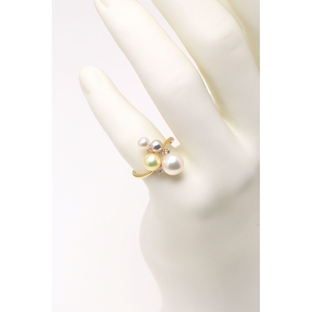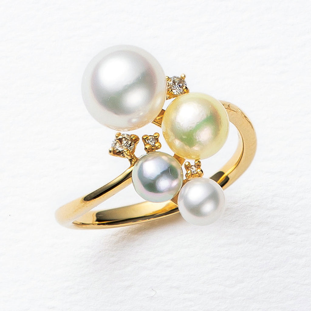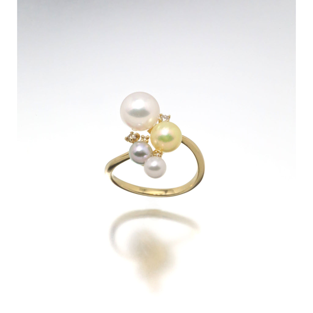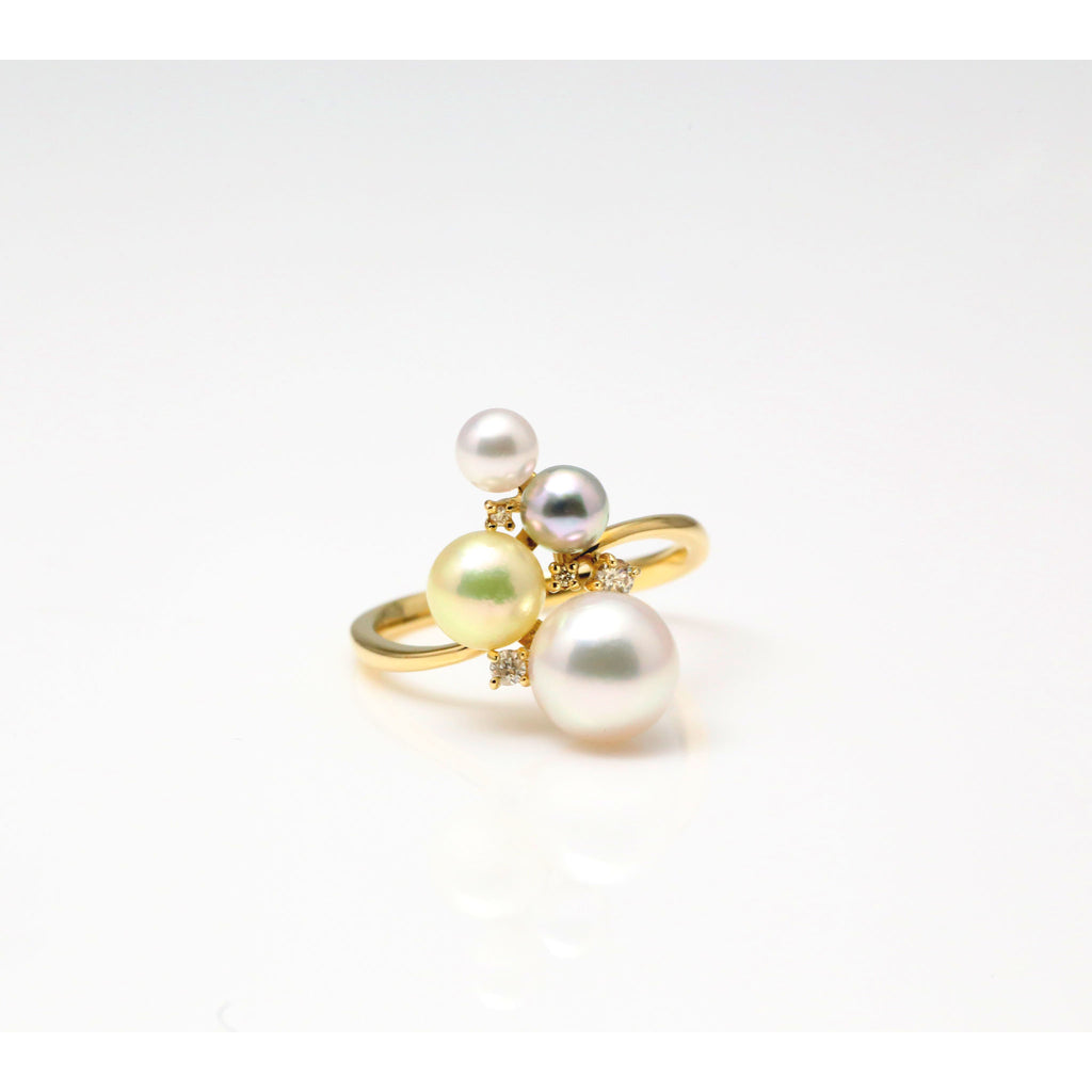 大小4珠のアコヤパールがまるで花束のように華やかにデザインされたリングです。