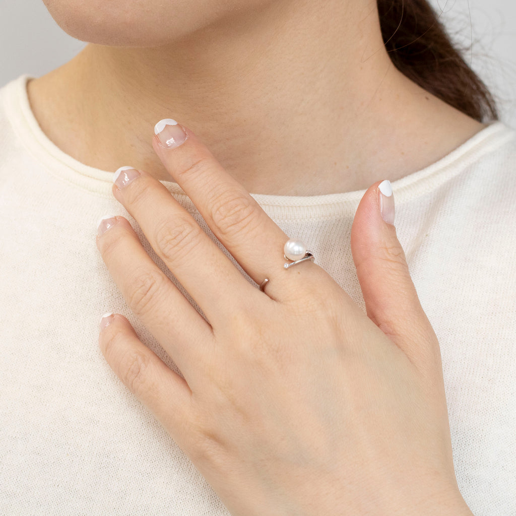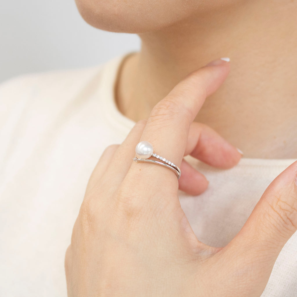 【 プラチナ製 アコヤパールオープンタイプリング 】