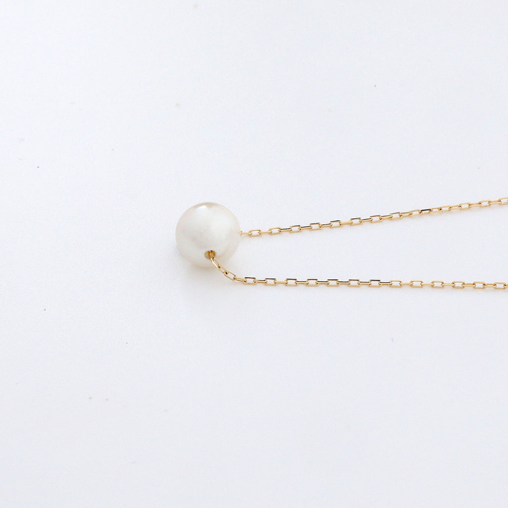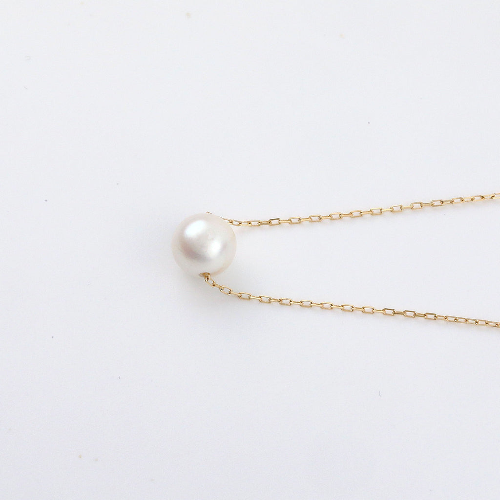 18金イエローゴールド製のアズキチェーンにアコヤパールをそのまま通しました。