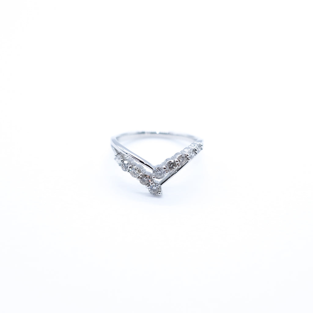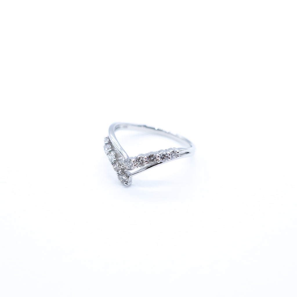 10石合計0.5ctのメレダイヤが輝くV字デザインのリングです。