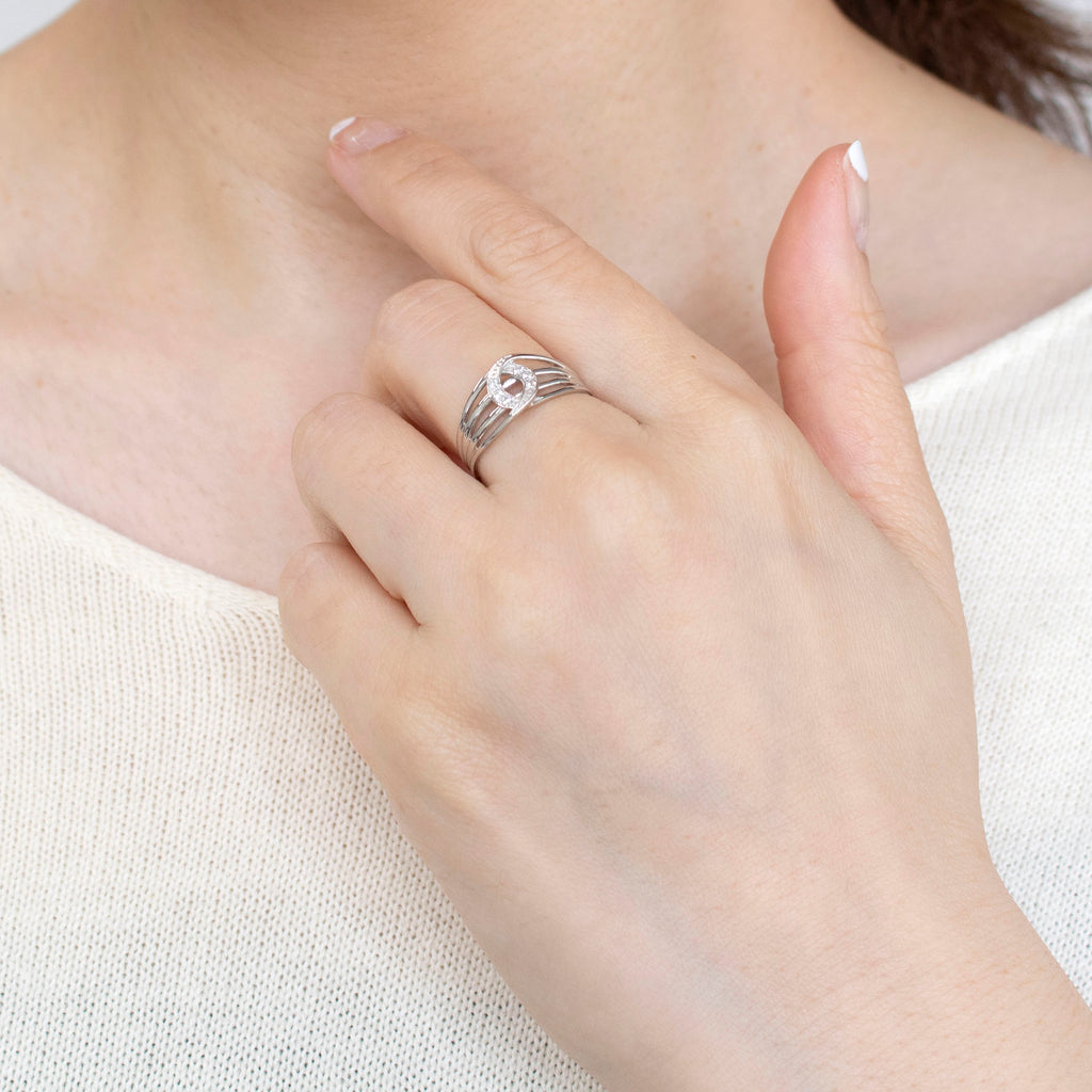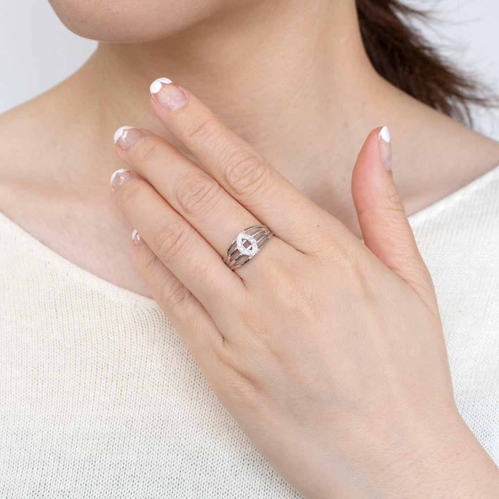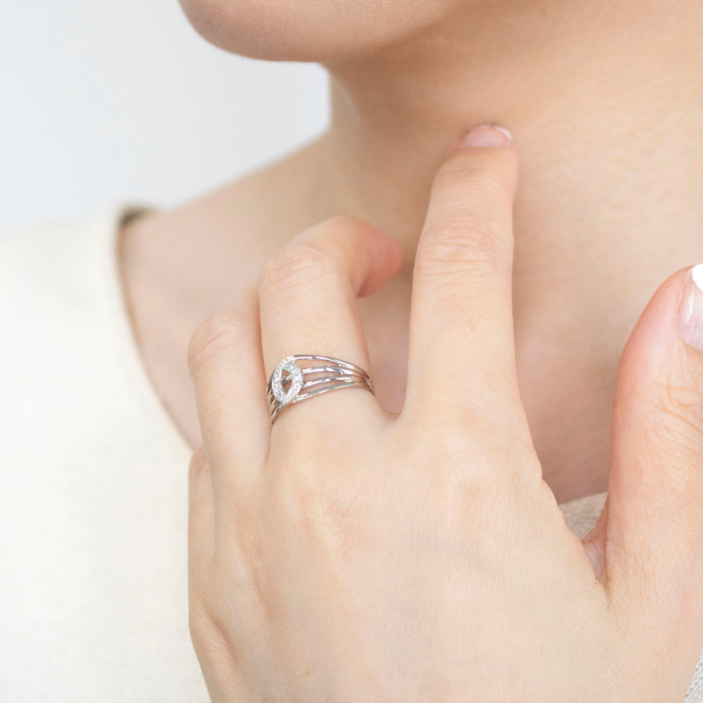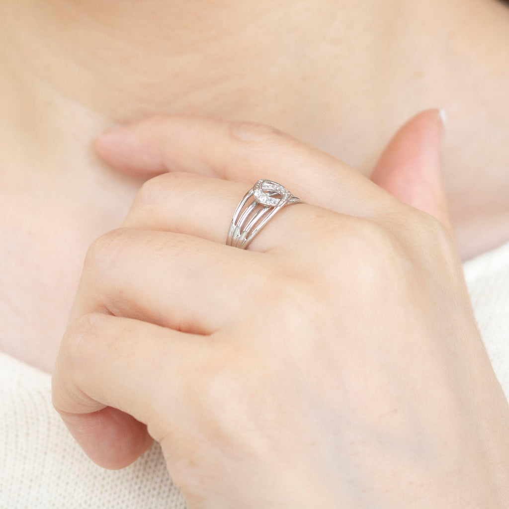 一番ボリュームのある中央のデザイン部分にはキラッと輝くメレダイヤをセット。