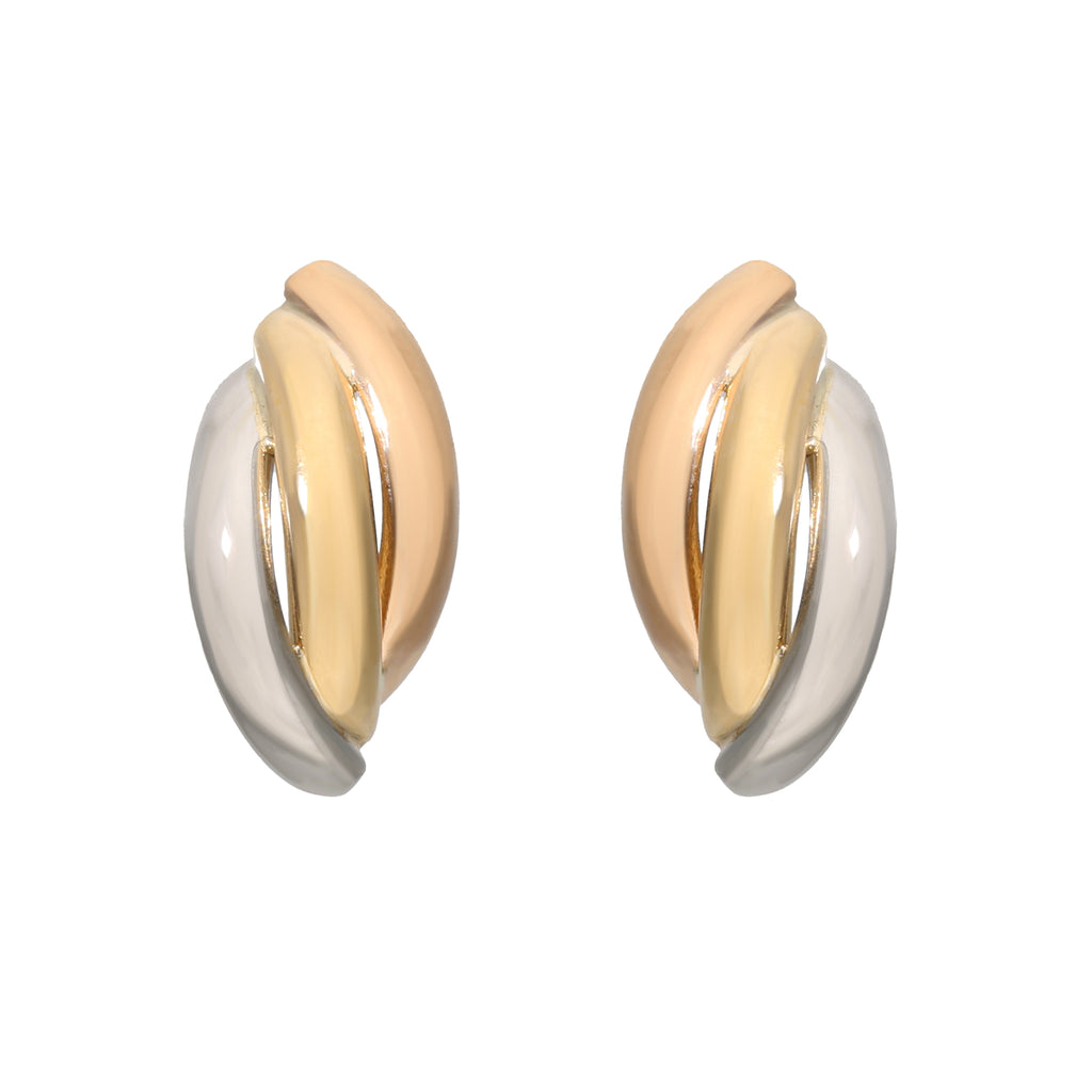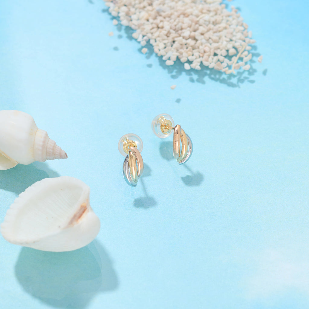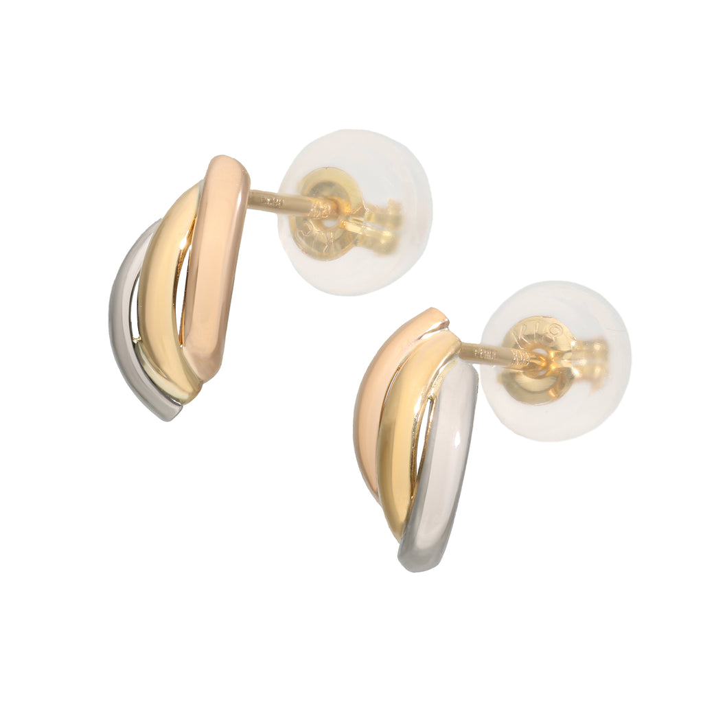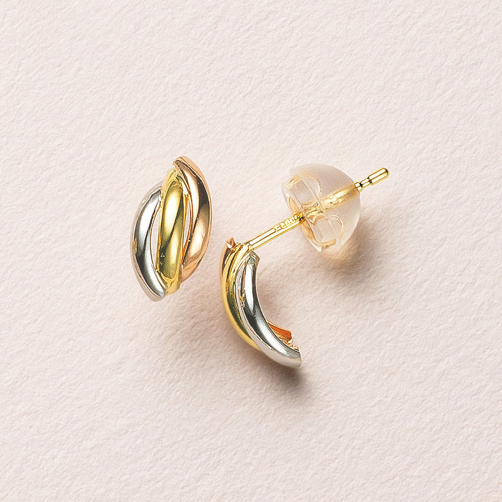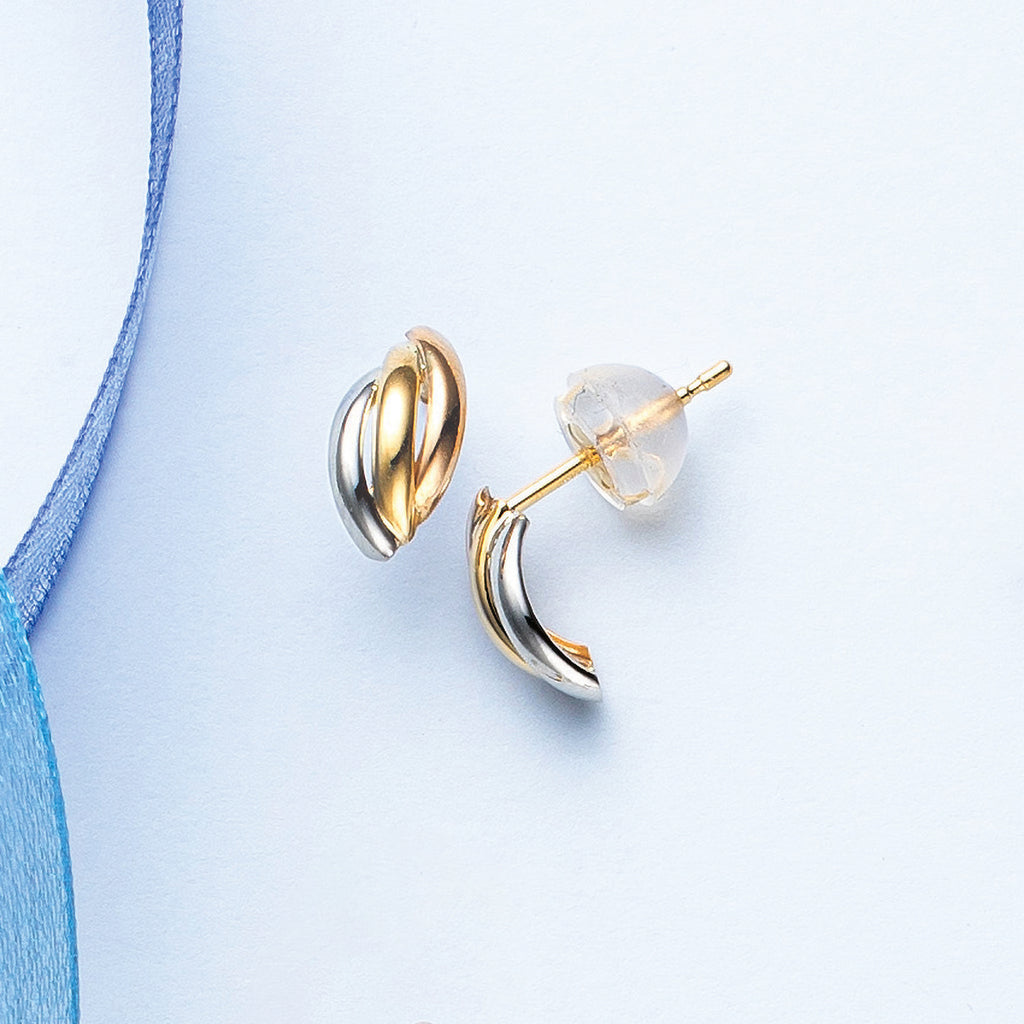 18金ピンクゴールド、18金イエローゴールド、プラチナと、コーディネートに重宝すると人気の3カラー=トリカラーの地金を使っています。