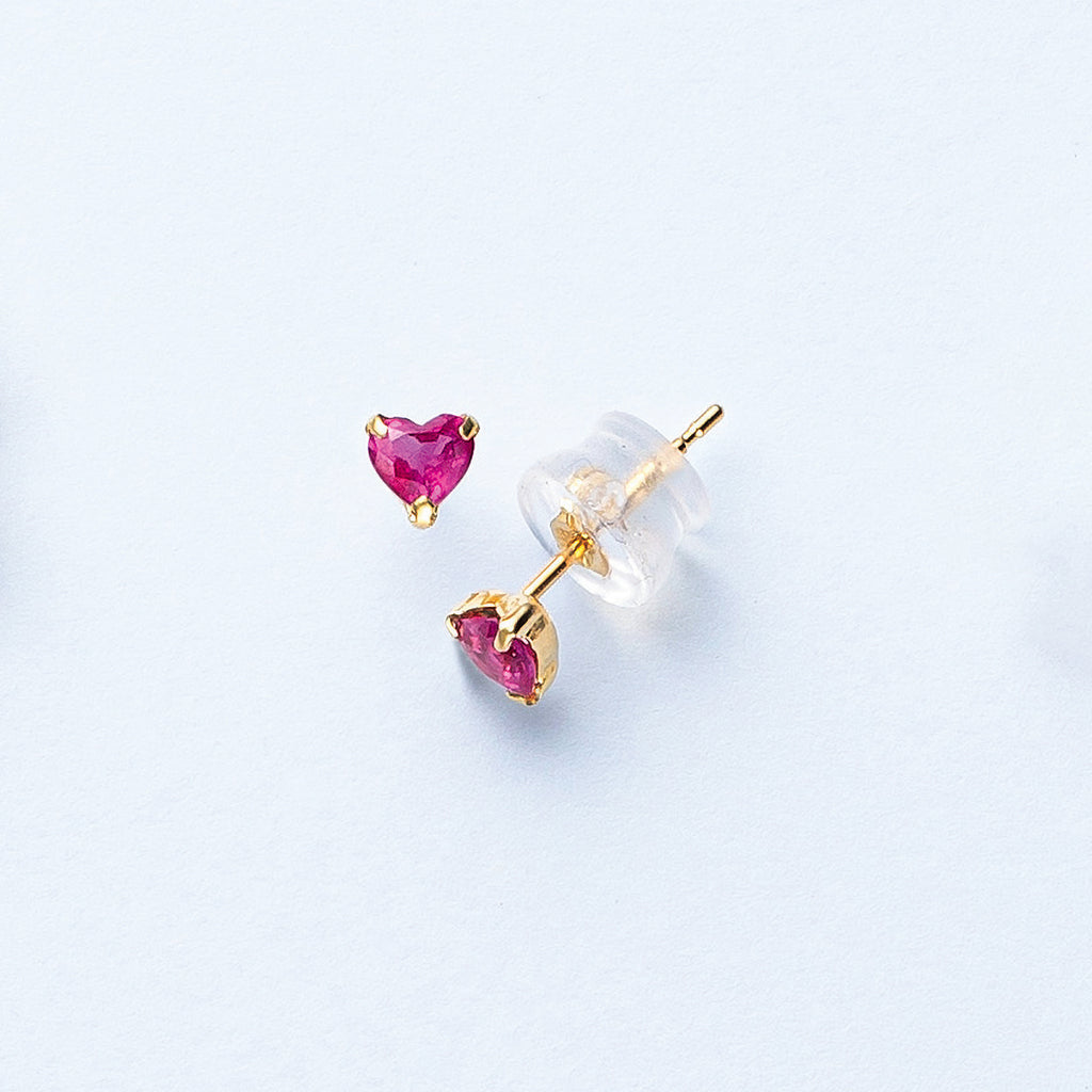 可愛らしいハートシェイプのルビーをシンプルなスタッドタイプのピアスに仕立てました。