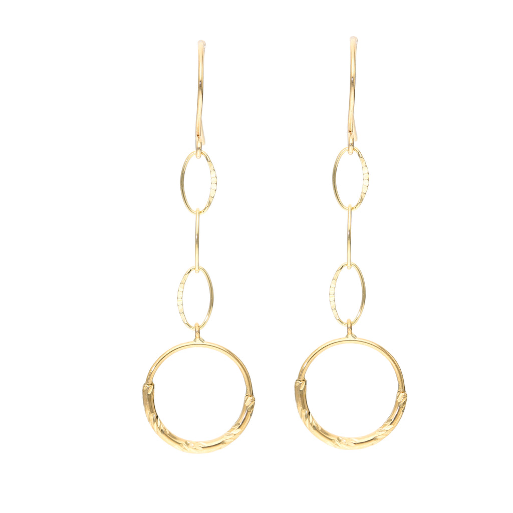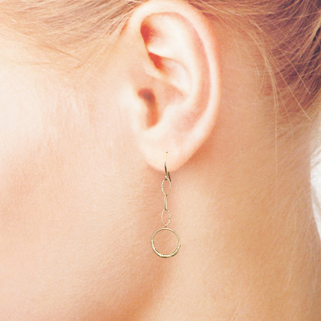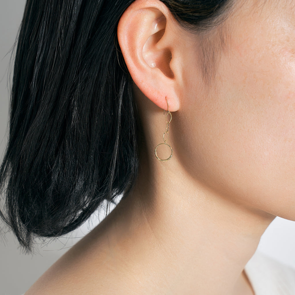 繊細な印象の楕円形のパーツを連ねた下にサークルモチーフを繋げました。