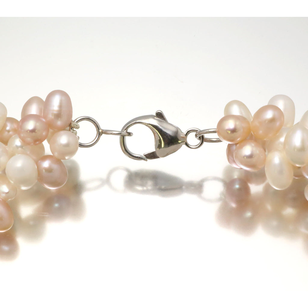 人気のマルチカラー、ホワイト系、ピンク系、オレンジ系カラーの淡水パールを使用。てりのよい淡水パールを厳選しているのでとっても華やかです。