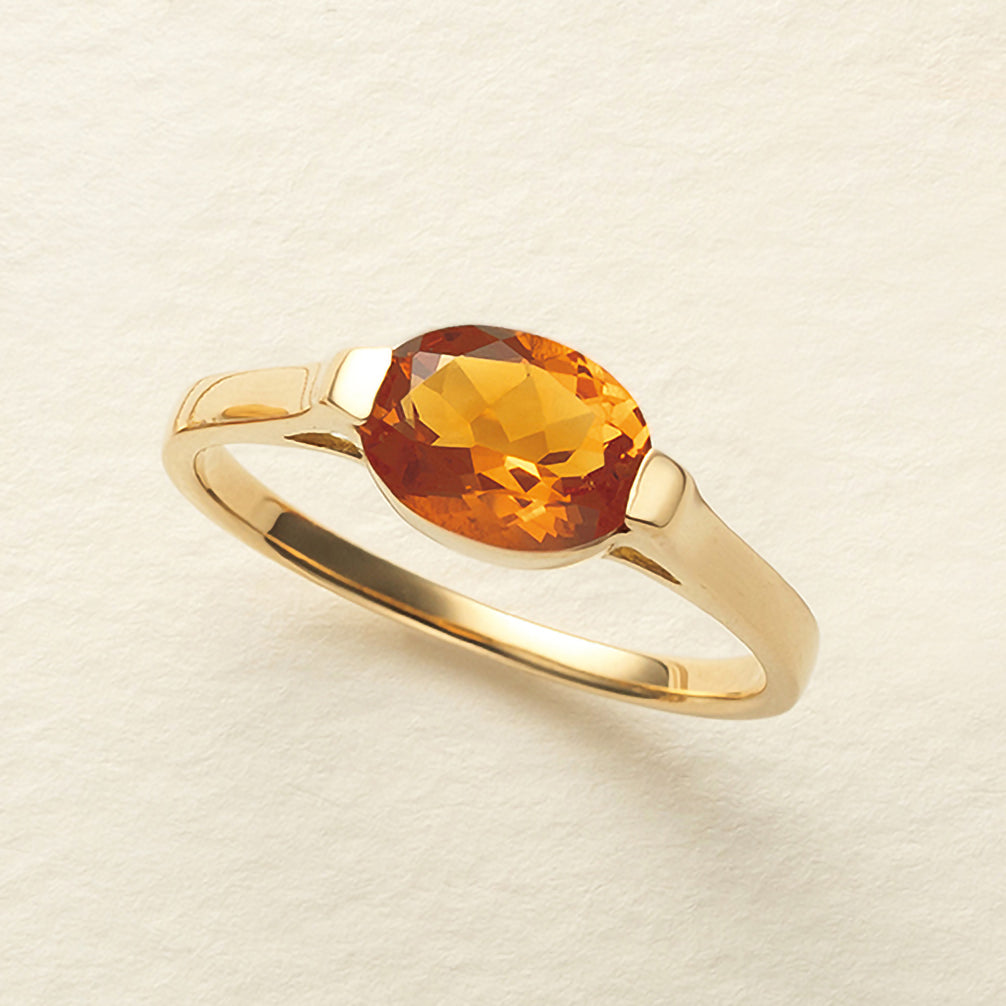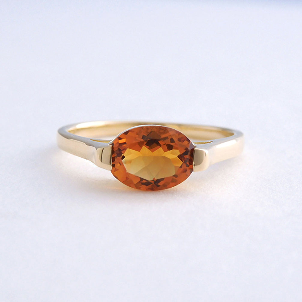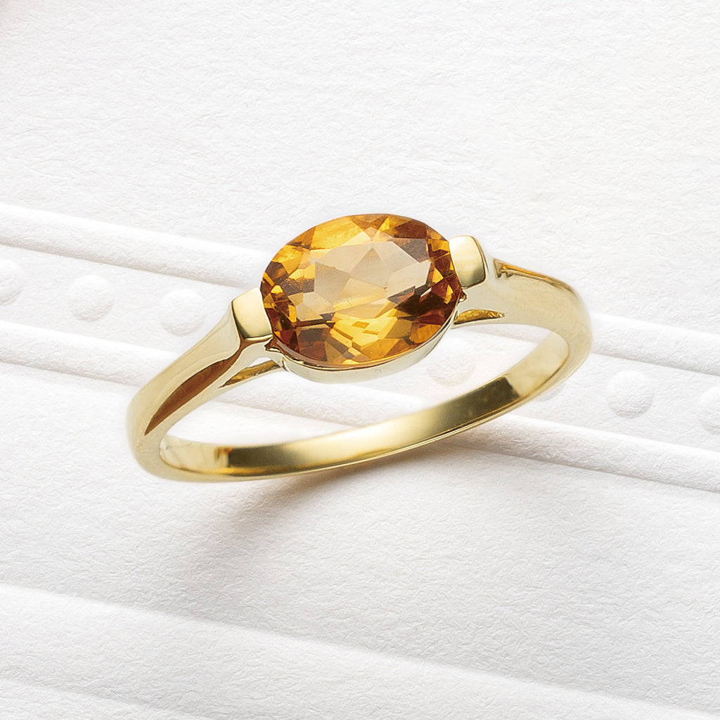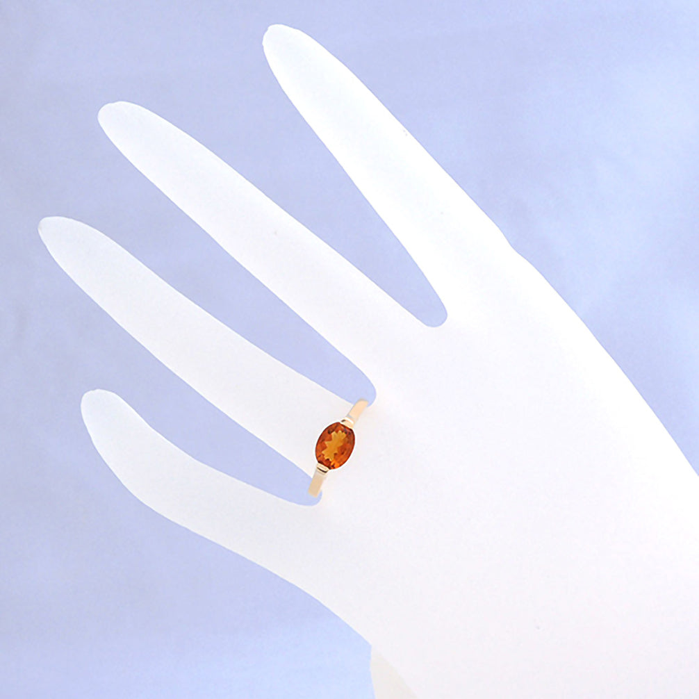 大粒1ctのオーバルシェイプのシトリンをイエローゴールドの枠で挟み込むようにセット。