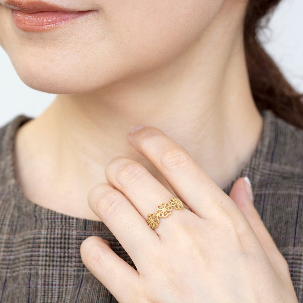 全体的にあまり高さのないデザインなので、まるで指に直接透かし模様を描いたようです。