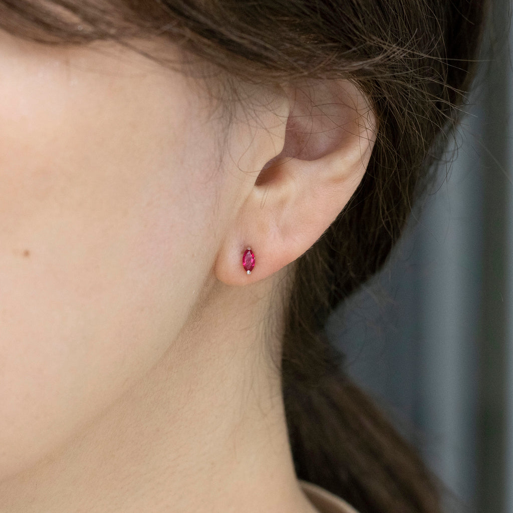 まるでルビーのように色鮮やかな赤い色が美しいレッドスピネルをベーシックなスタッドタイプのピアスに仕立てました。黒みのないピュアなレッドです。
