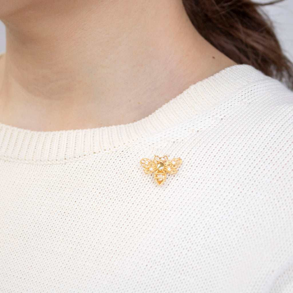 生き生きとデザインされたミツバチモチーフのピンブローチです。