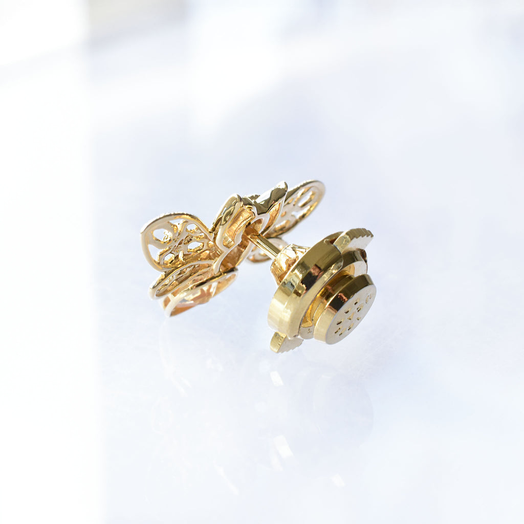 羽根の部分の透かし模様はミツバチの巣を思わせる六角形をデザインしました。全身に様々な繊細な細工が施された職人技が光るつくりです。
