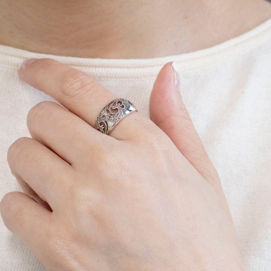 【 シルバー製 レースデザインリング 】