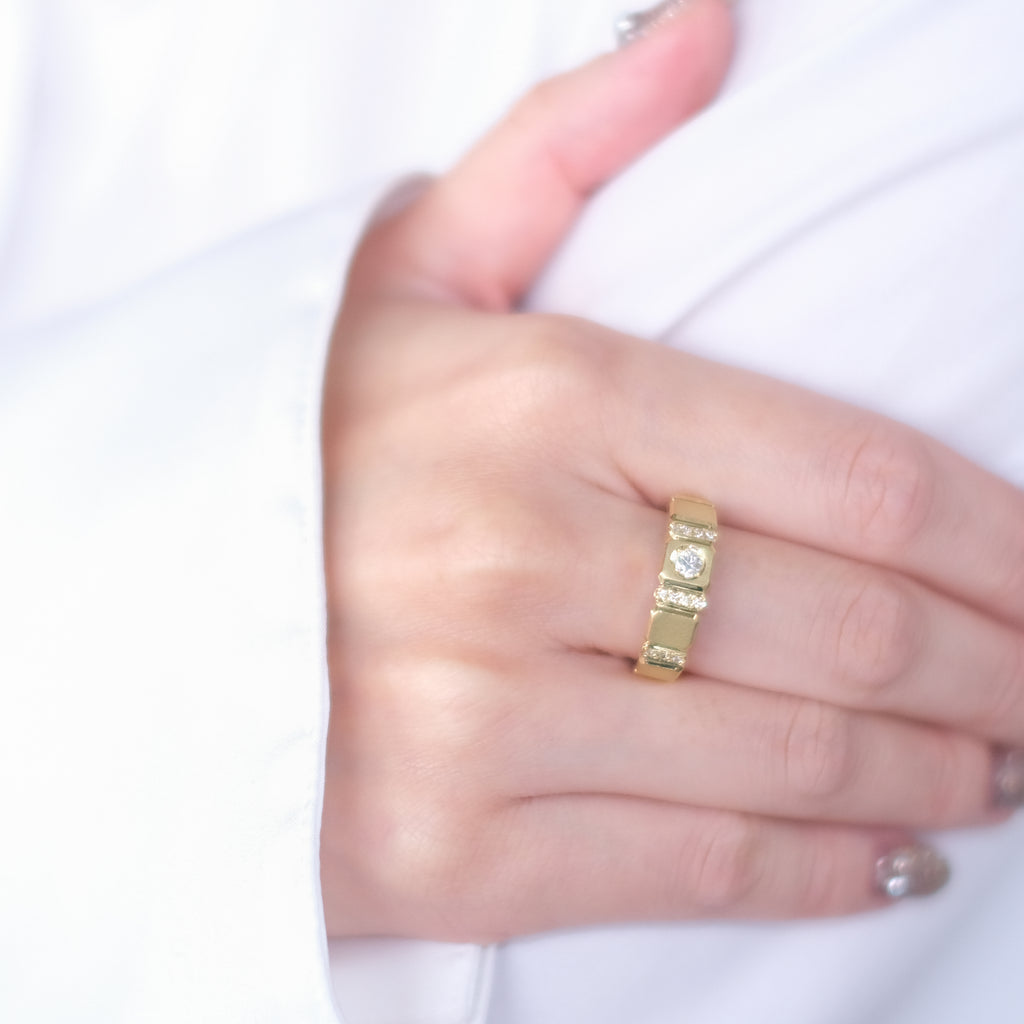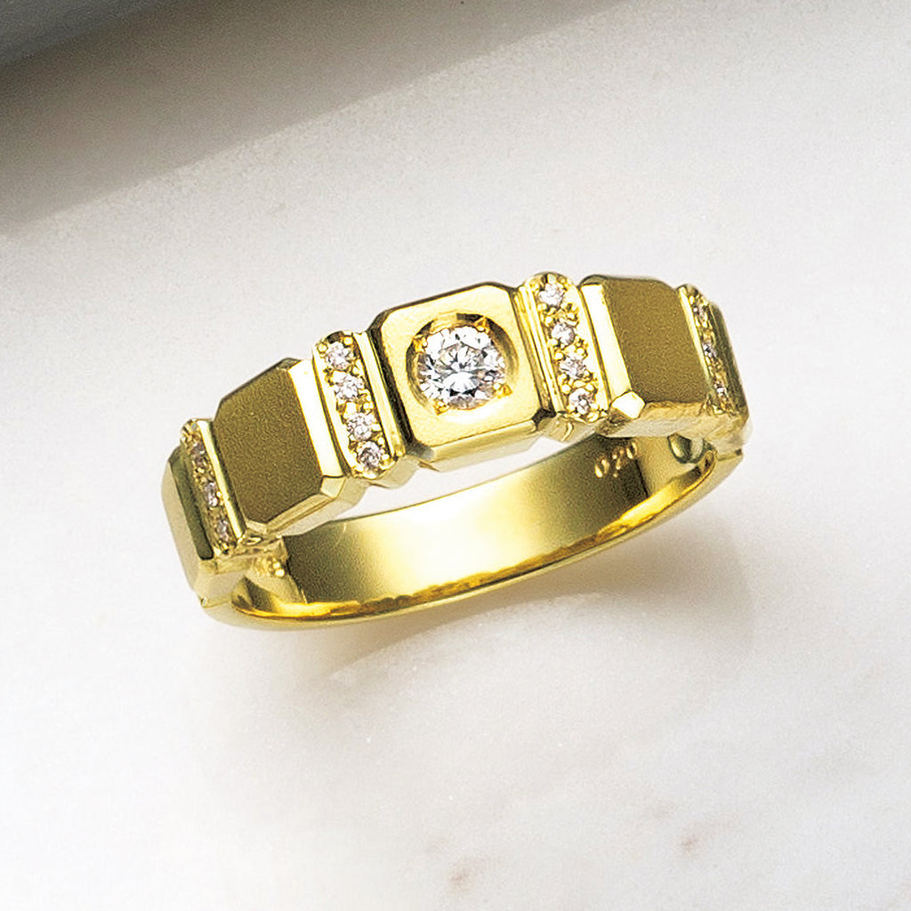 ユニセックスで使える18金イエローゴールド製のリングです。