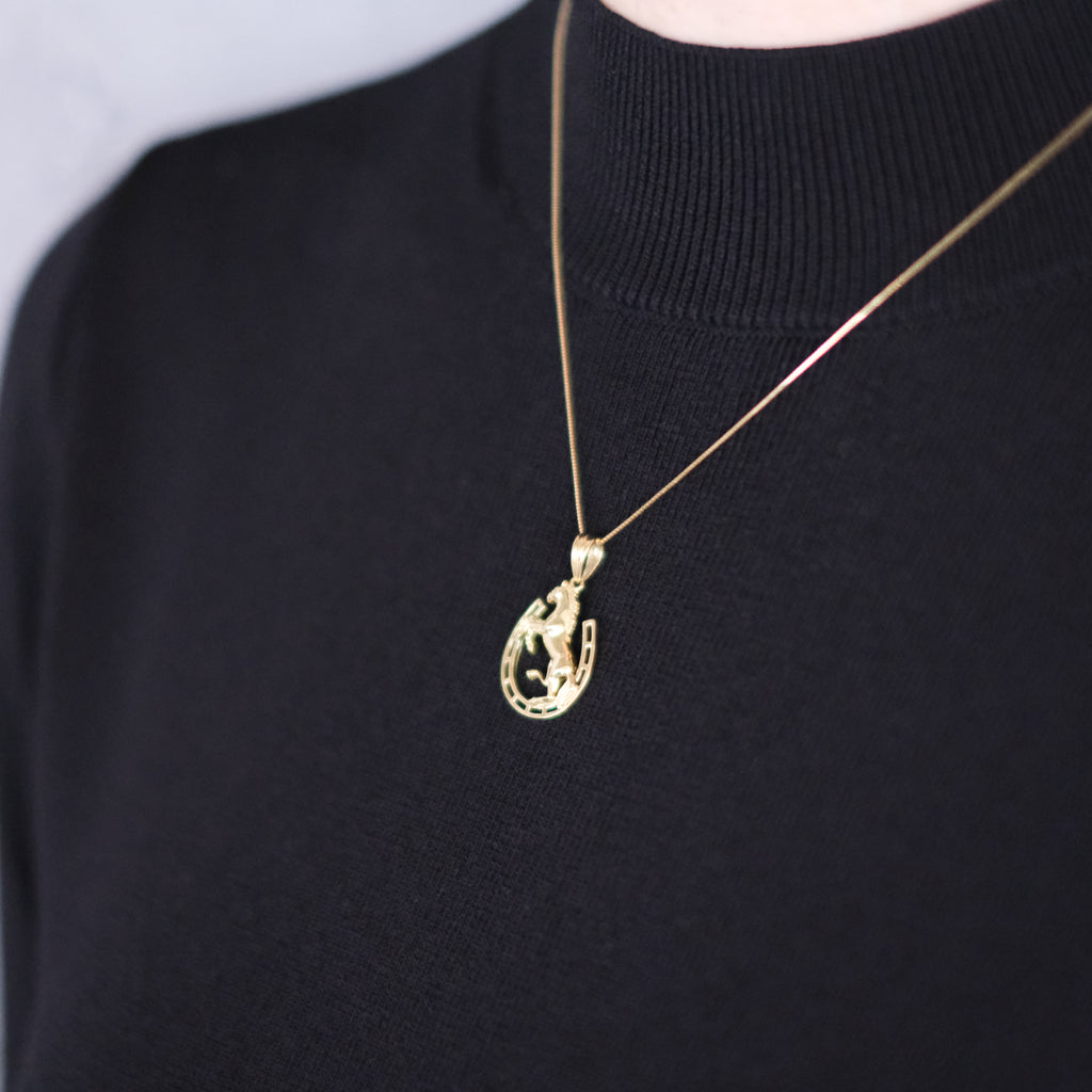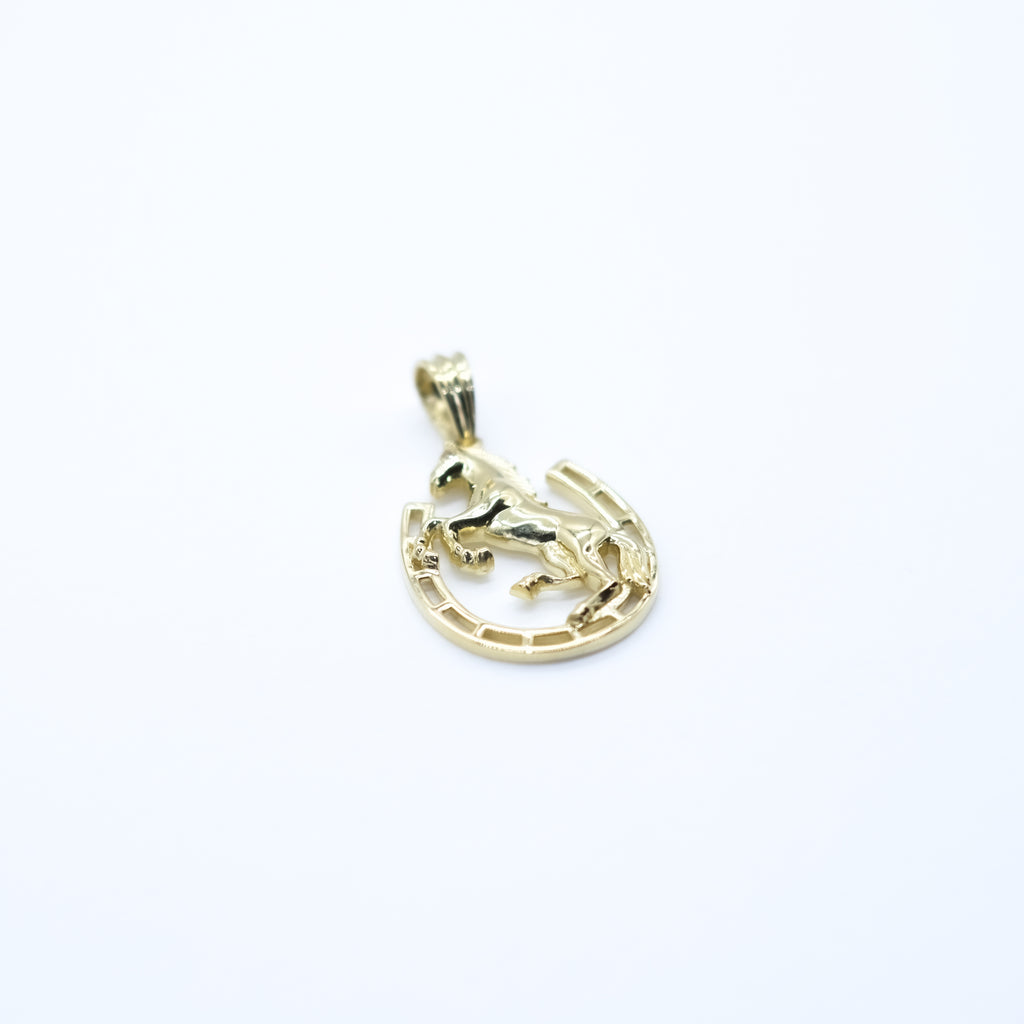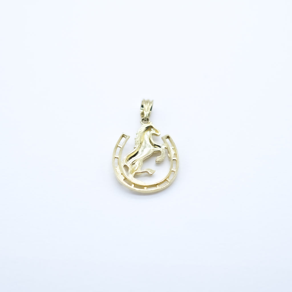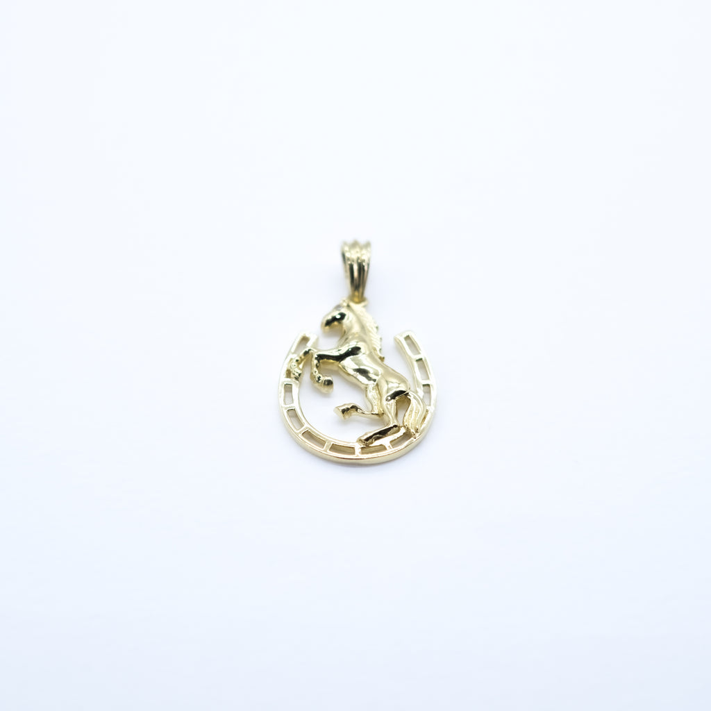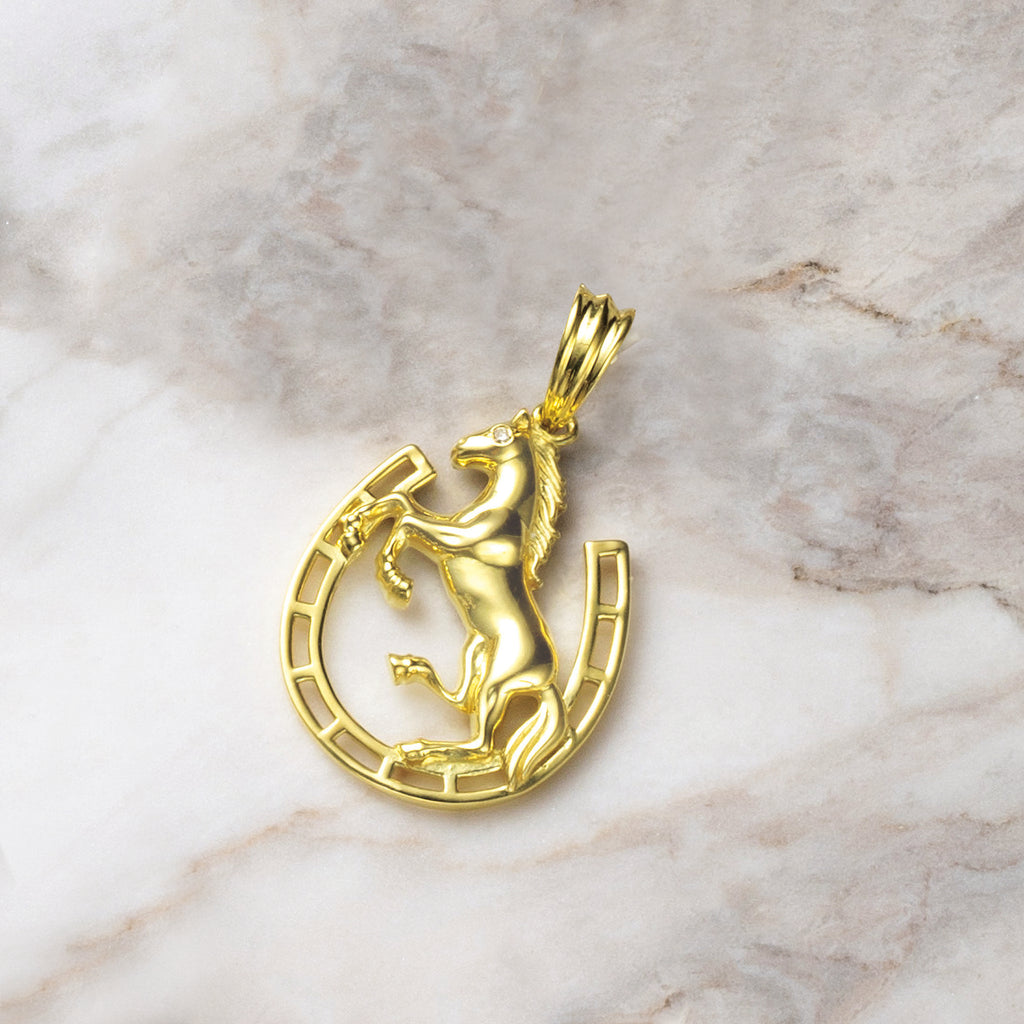 【 18金イエローゴールド 馬蹄&跳ね馬モチーフペンダントトップ 】
