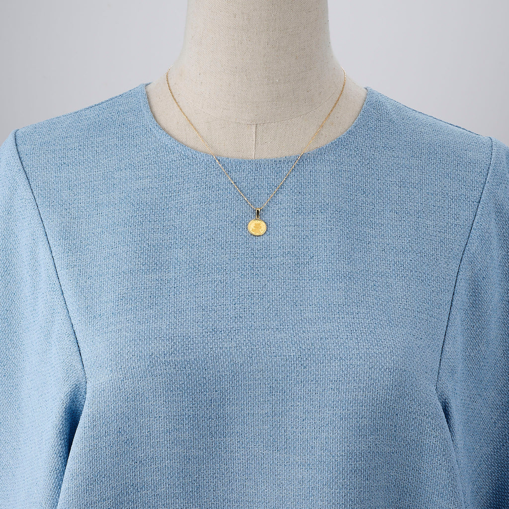 金の重さをあらわすのにはトロイオンス(=oz)という単位が使われ、1oz=約31.1gになります。1/30oz=約1.03gの純金製のコインを、18金製のシンプルな枠にセットしました。