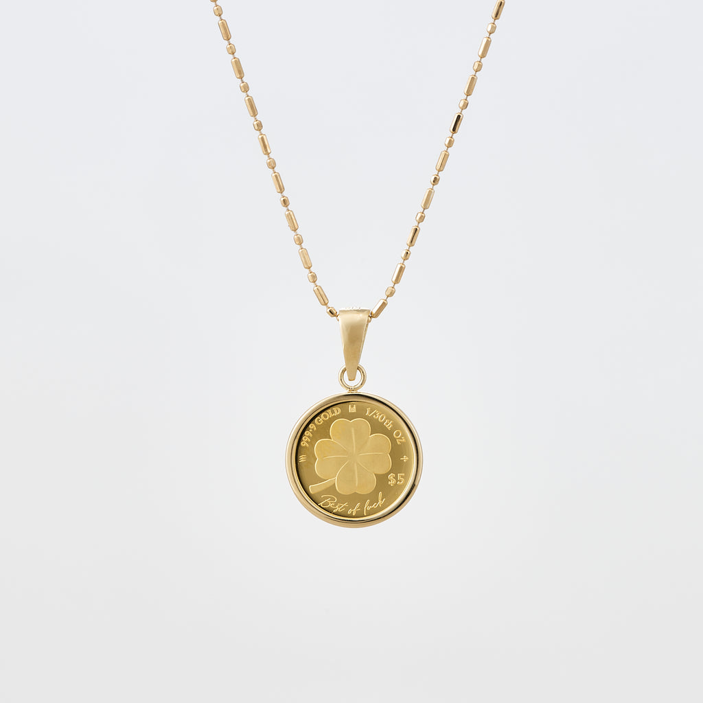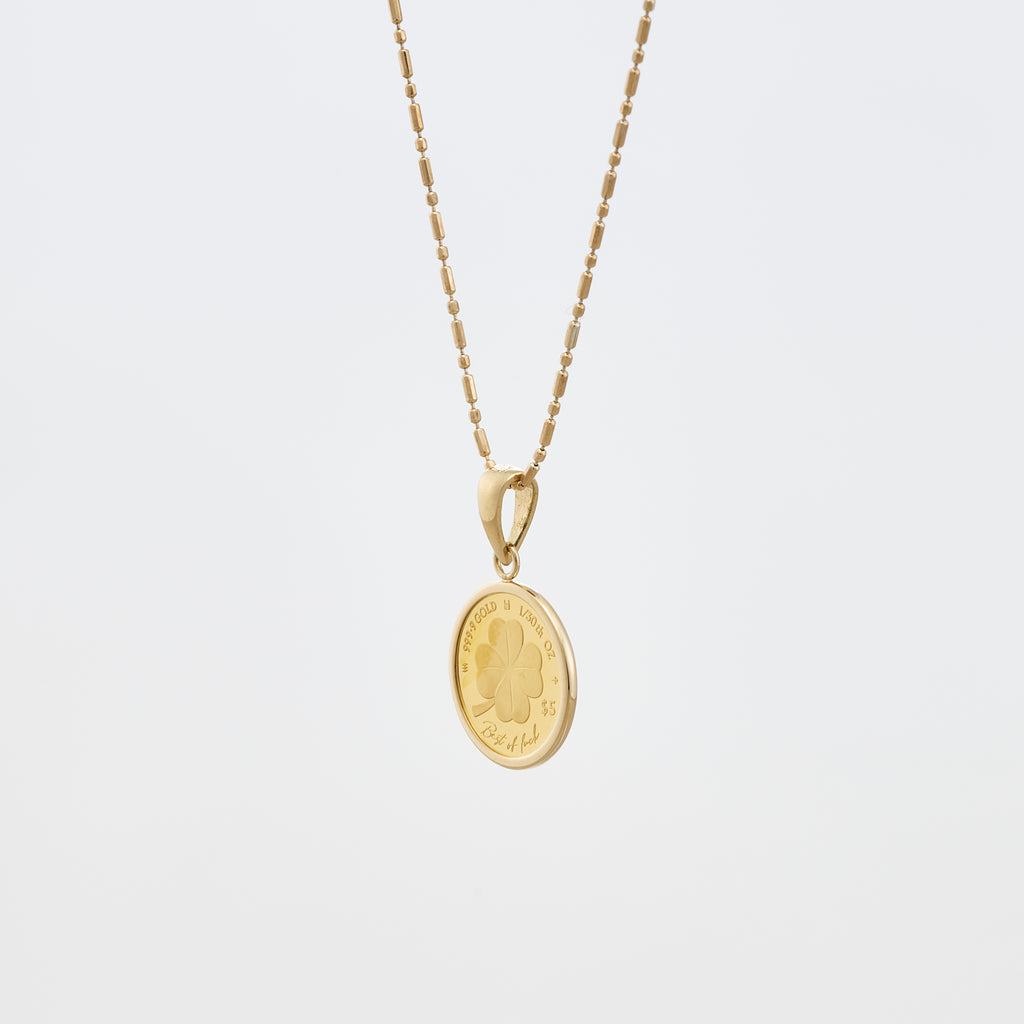 【 純金製 四つ葉のクローバーコインペンダントトップ 1/30oz 】