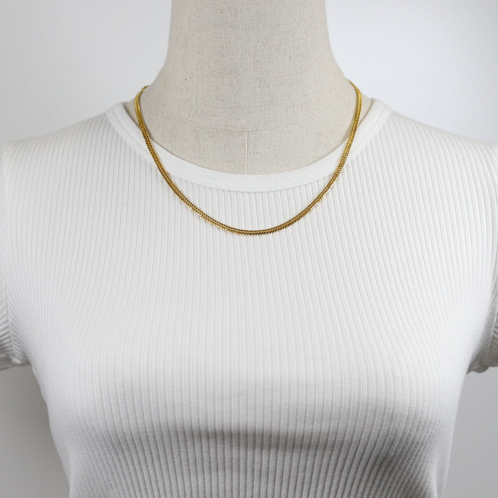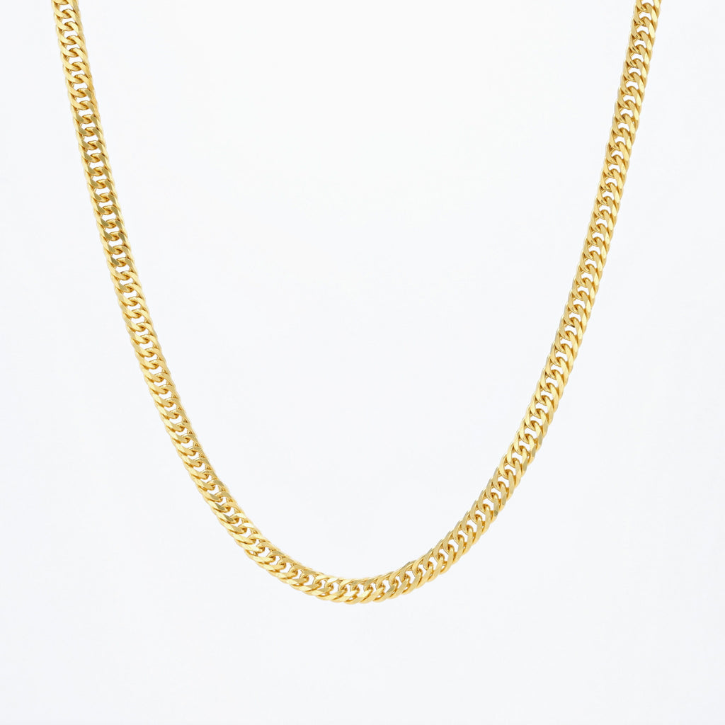 コマ同士が密集しているためなめらかさと重厚感があり、さらに6面カットによりキラキラした輝きもお楽しみいただけるのが、この喜平ダブル6面カットネックレスです。