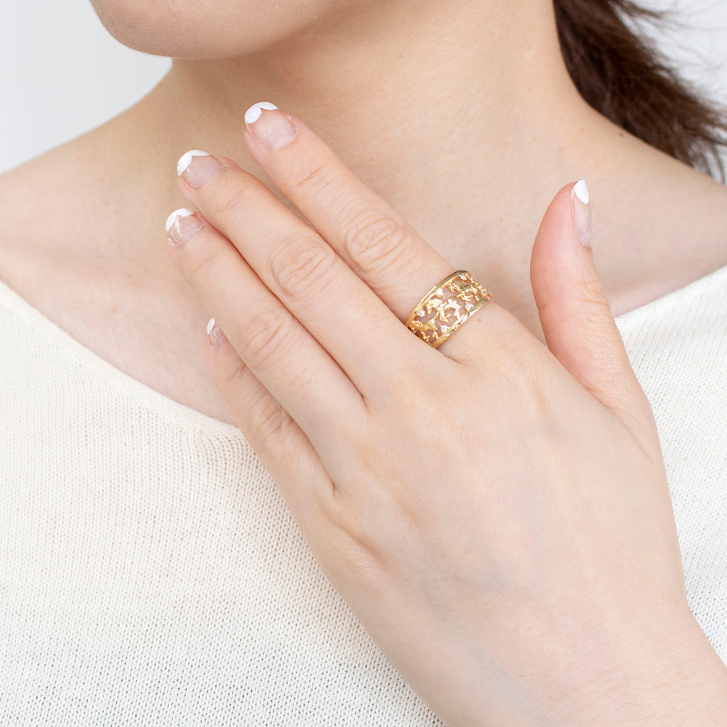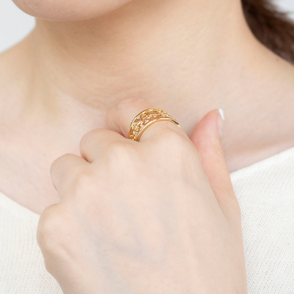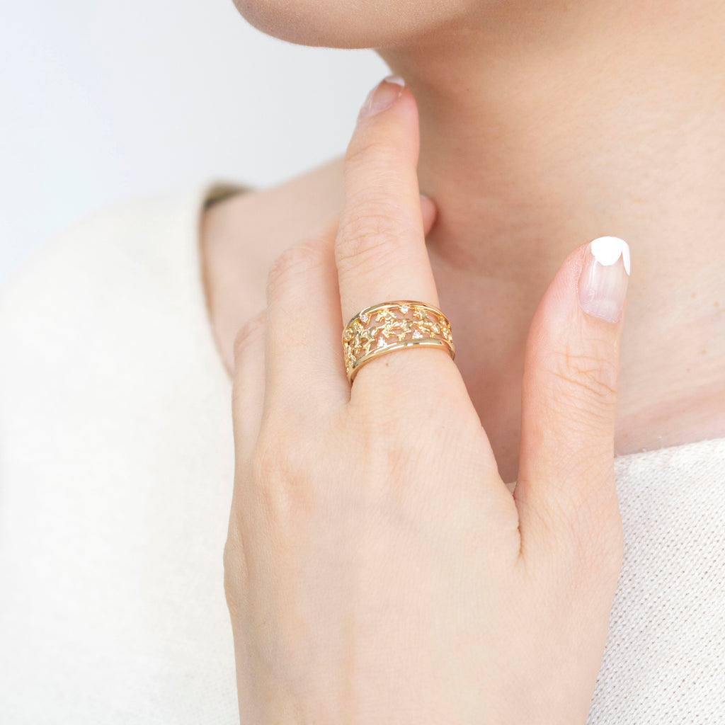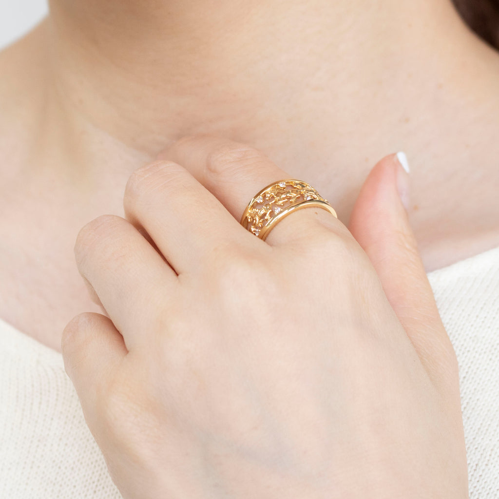 ボリューム感たっぷりで華やかさのある、手元での存在感抜群のリングです。