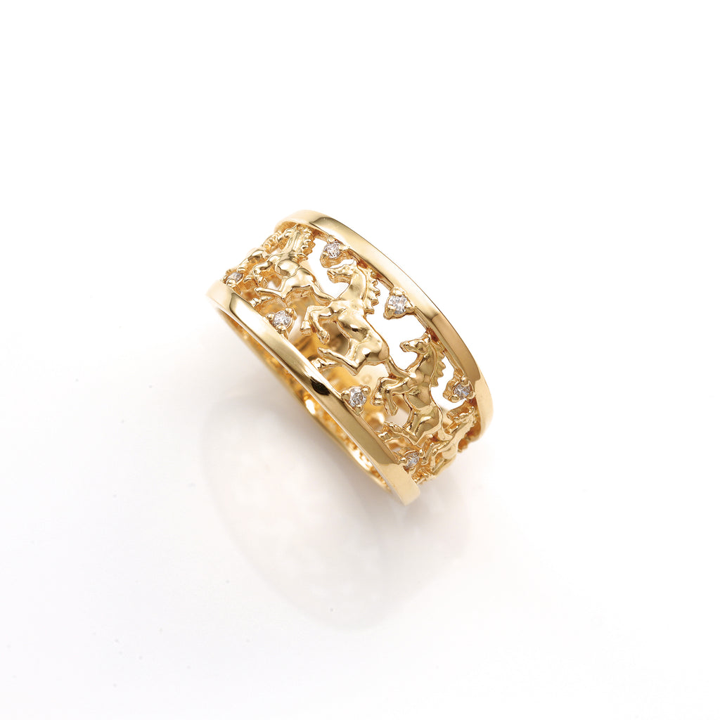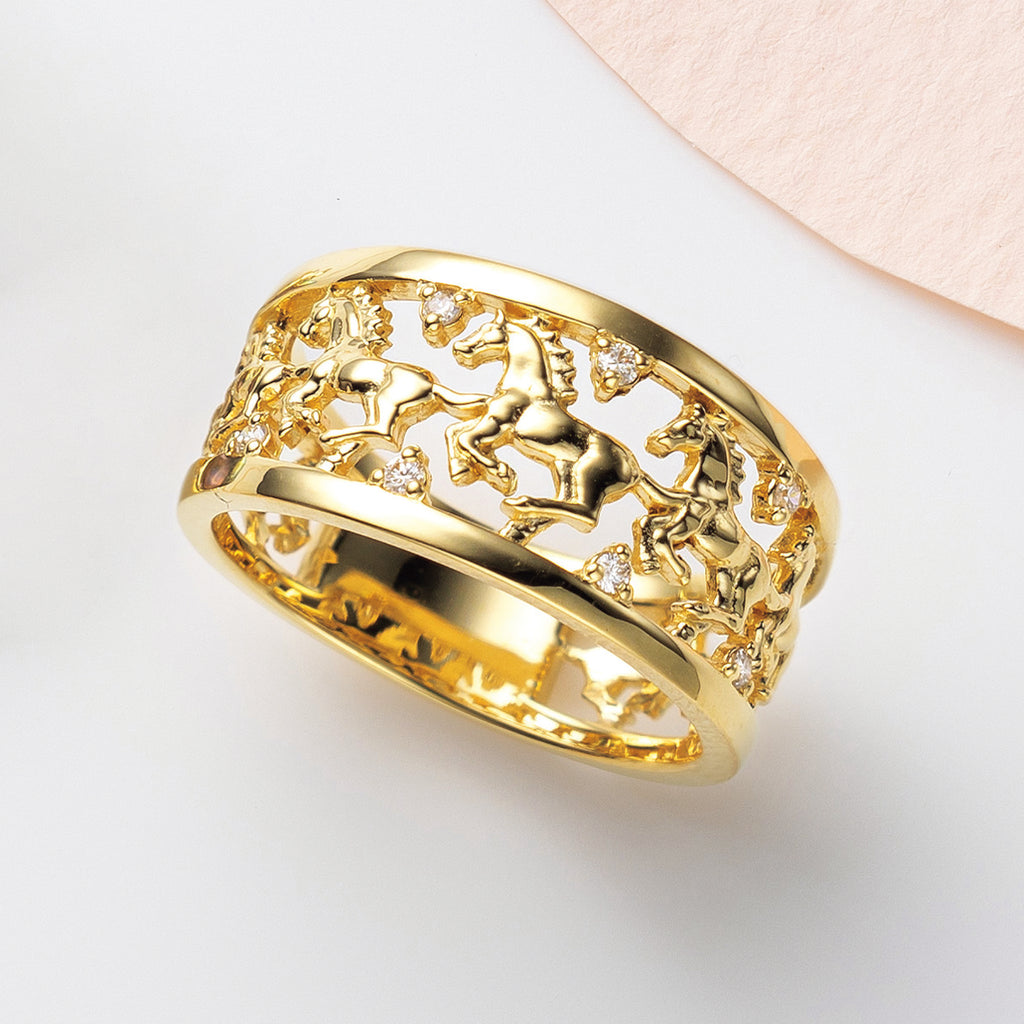 9頭の馬が駆ける姿をデザインした「馬九行久(うまくいく)」リングです。