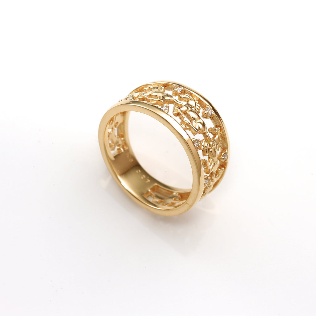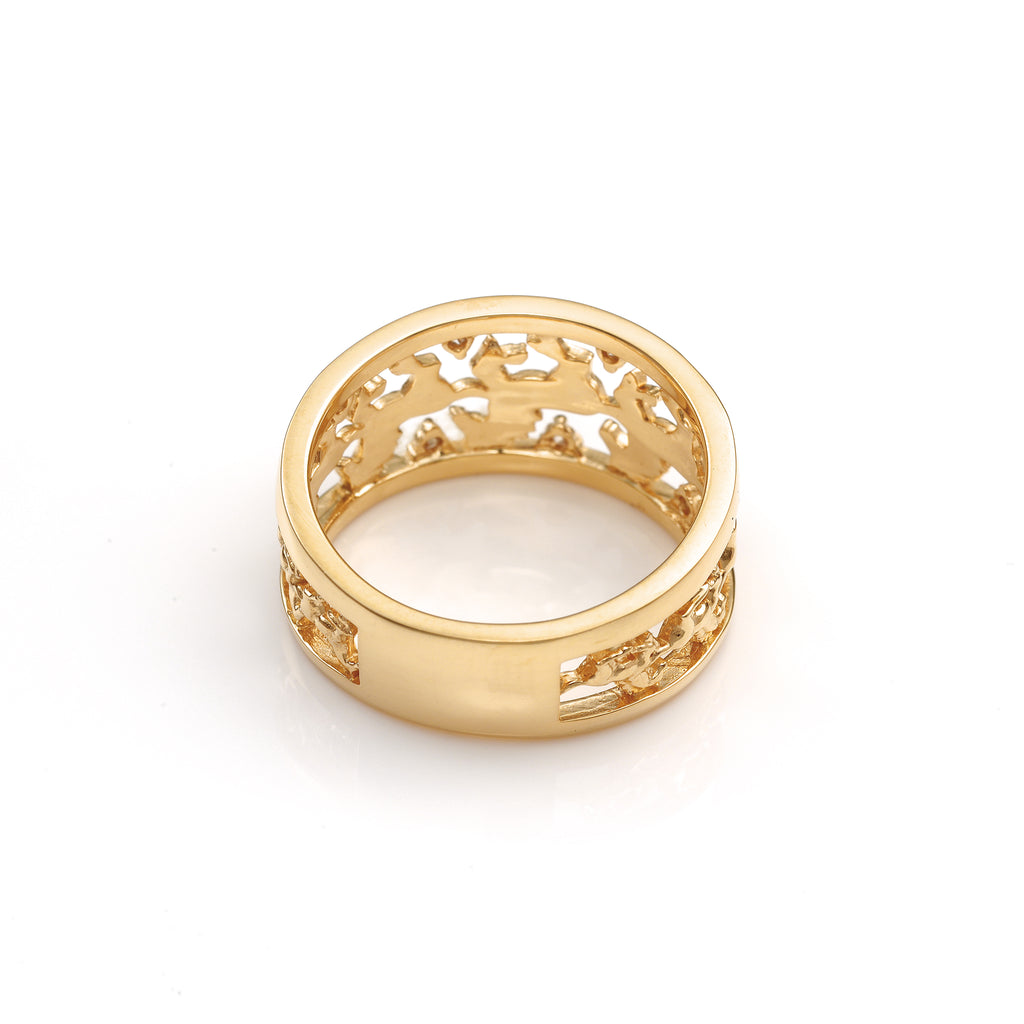 【 運気アップ 18金イエローゴールド製 馬九行久(うまくいく)ボリュームリング 】