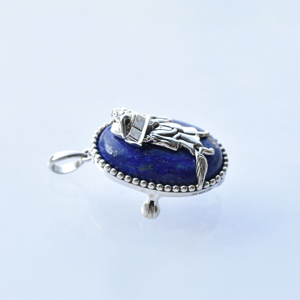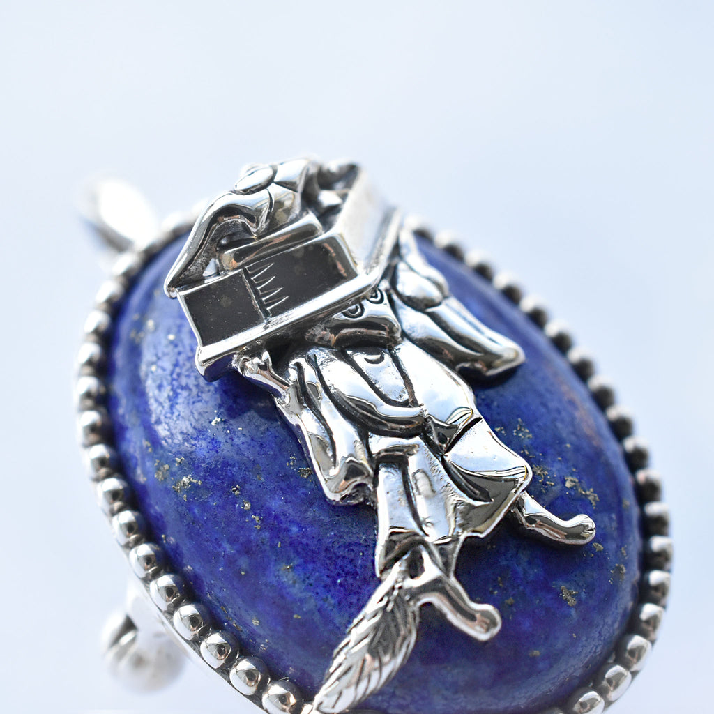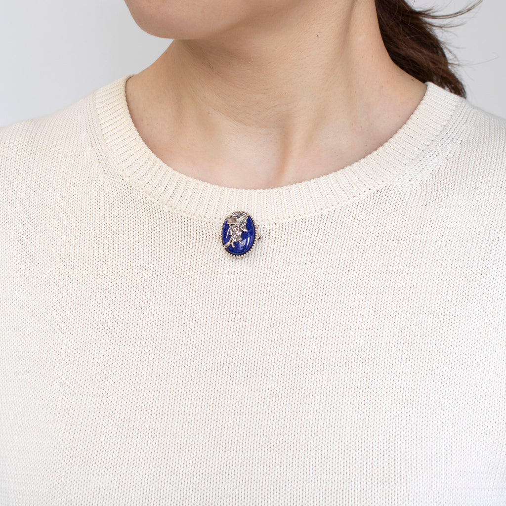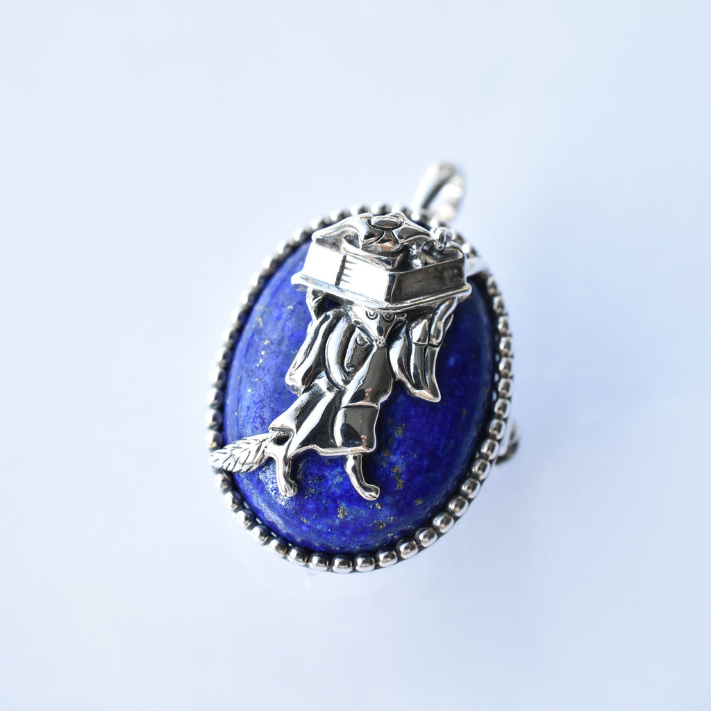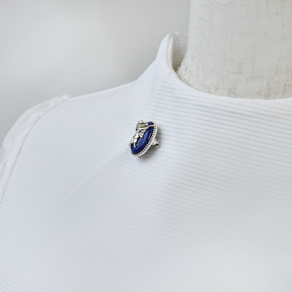 【 鳥獣戯画「宴会の準備」ラピスラズリブローチ兼ペンダントトップ 】