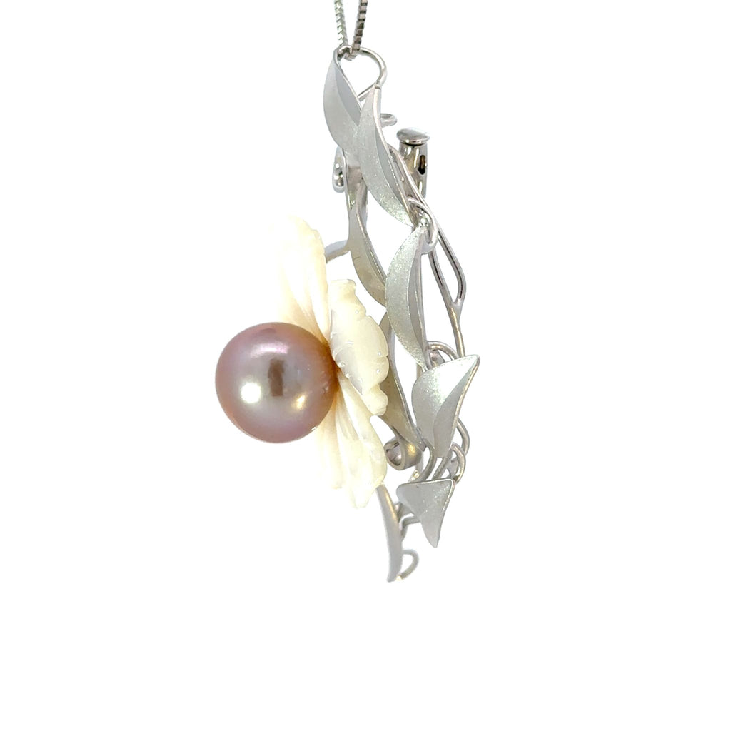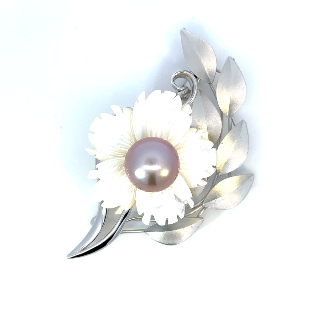 【 淡水パール フラワーモチーフブローチ兼ペンダントトップ 】