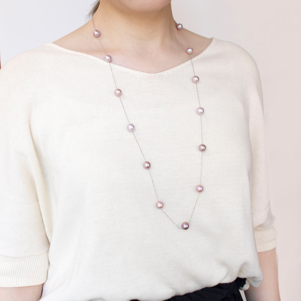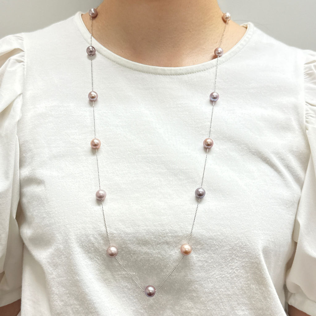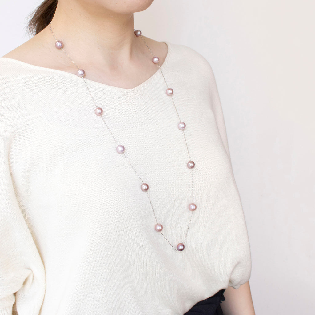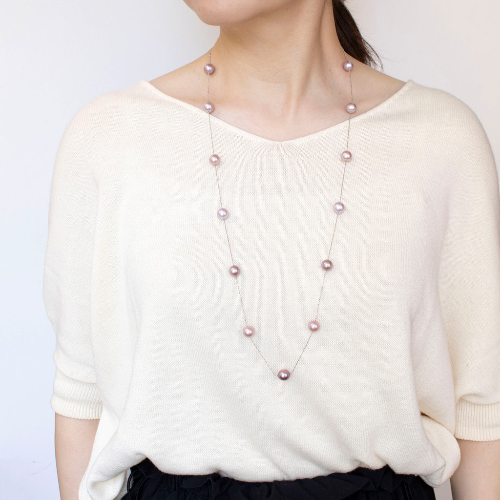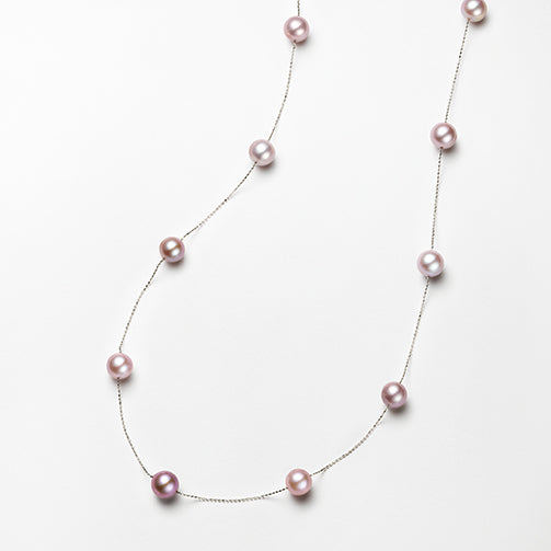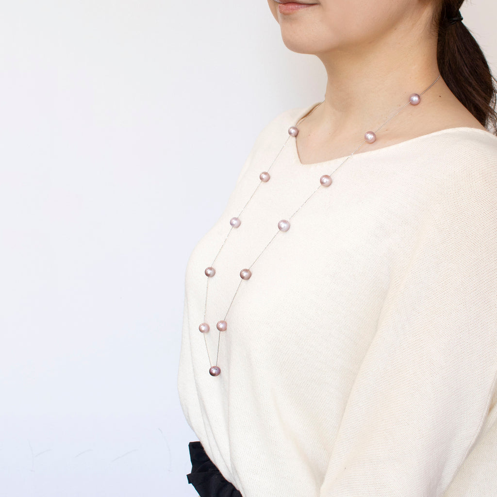 有核の淡水パールを使った人気のステーションタイプのネックレスです。