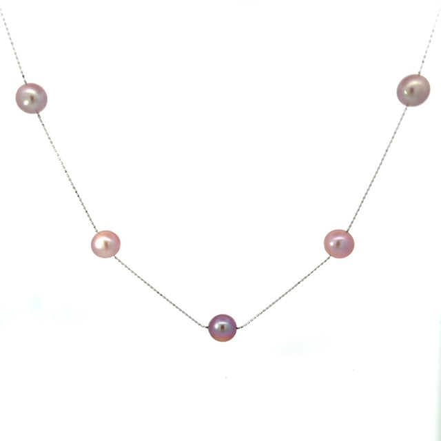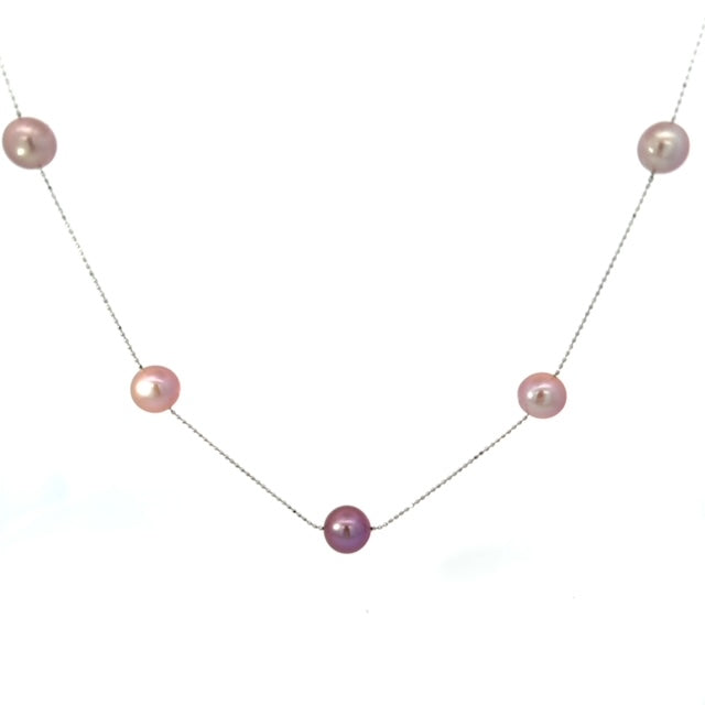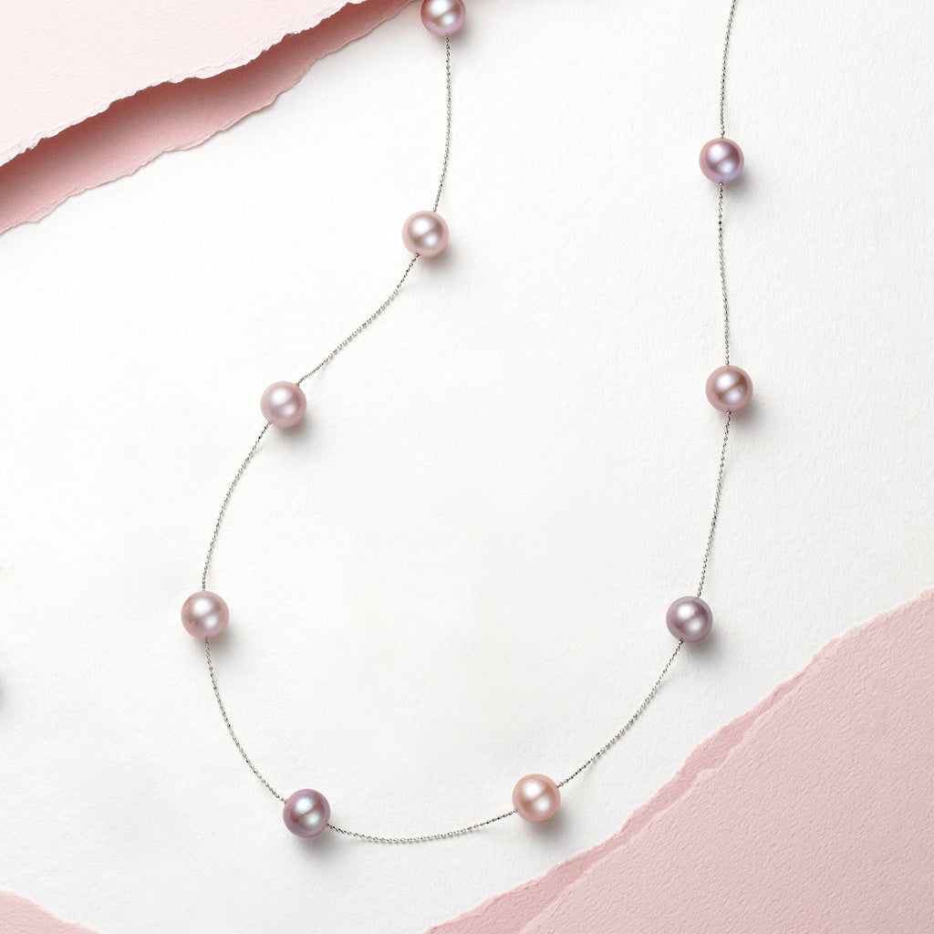 【 プラチナ製 9mm淡水パールステーションネックレス 】
