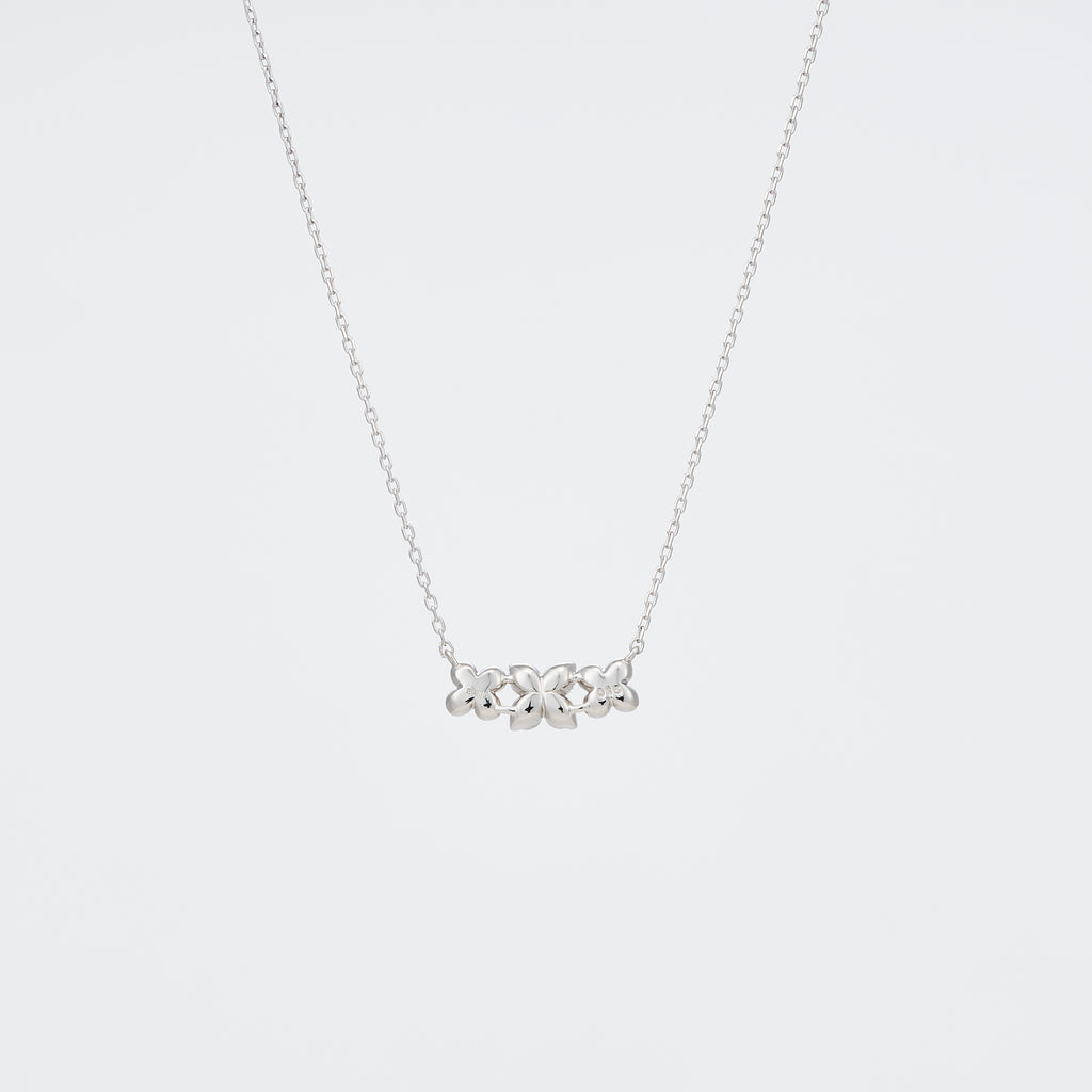 四つ葉のクローバーが3つ横に並んだ可憐なデザインのネックレスです。