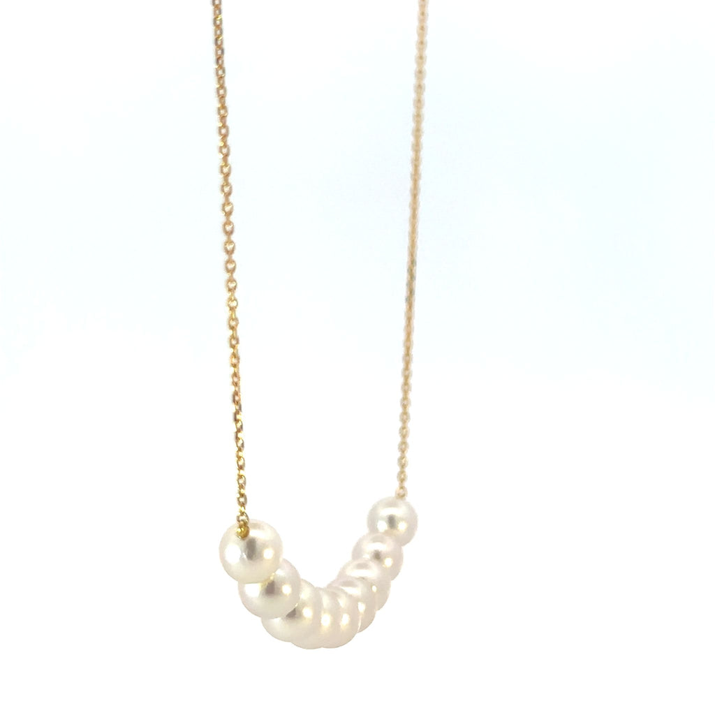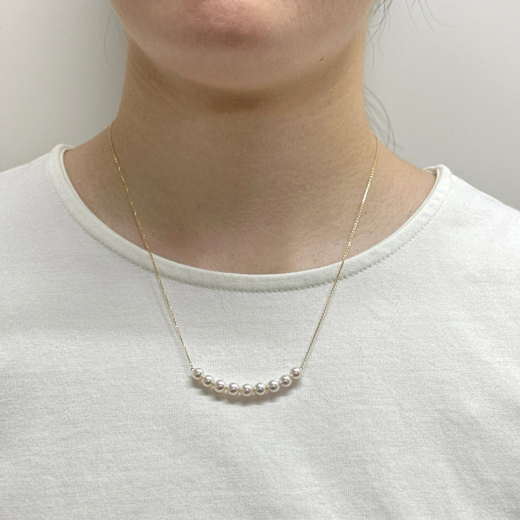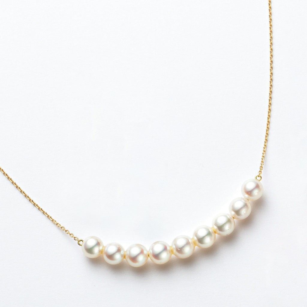 同じ大きさのアコヤパールを9珠、緩やかなU字に並べたネックレスです。