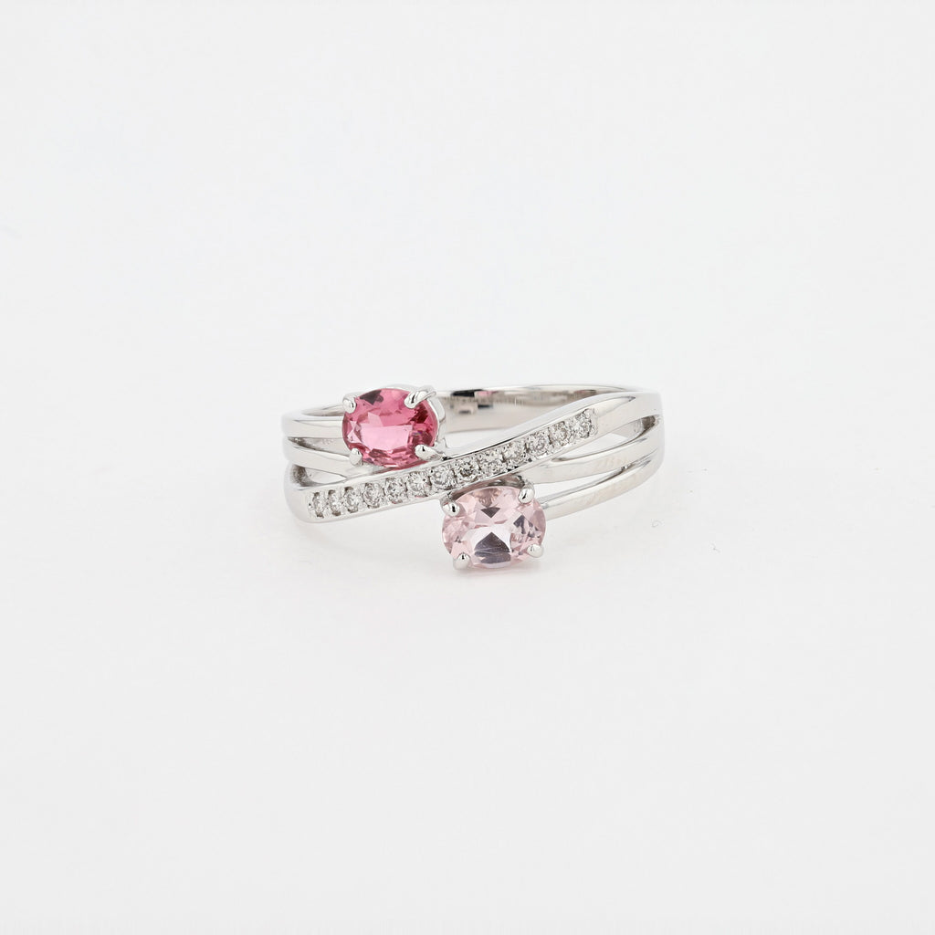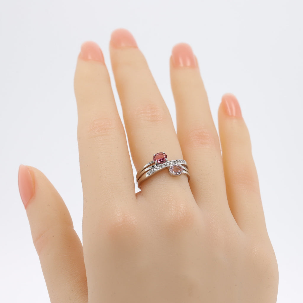 濃いピンク色が目を引くピンクトルマリンを組み合わせたリングです。