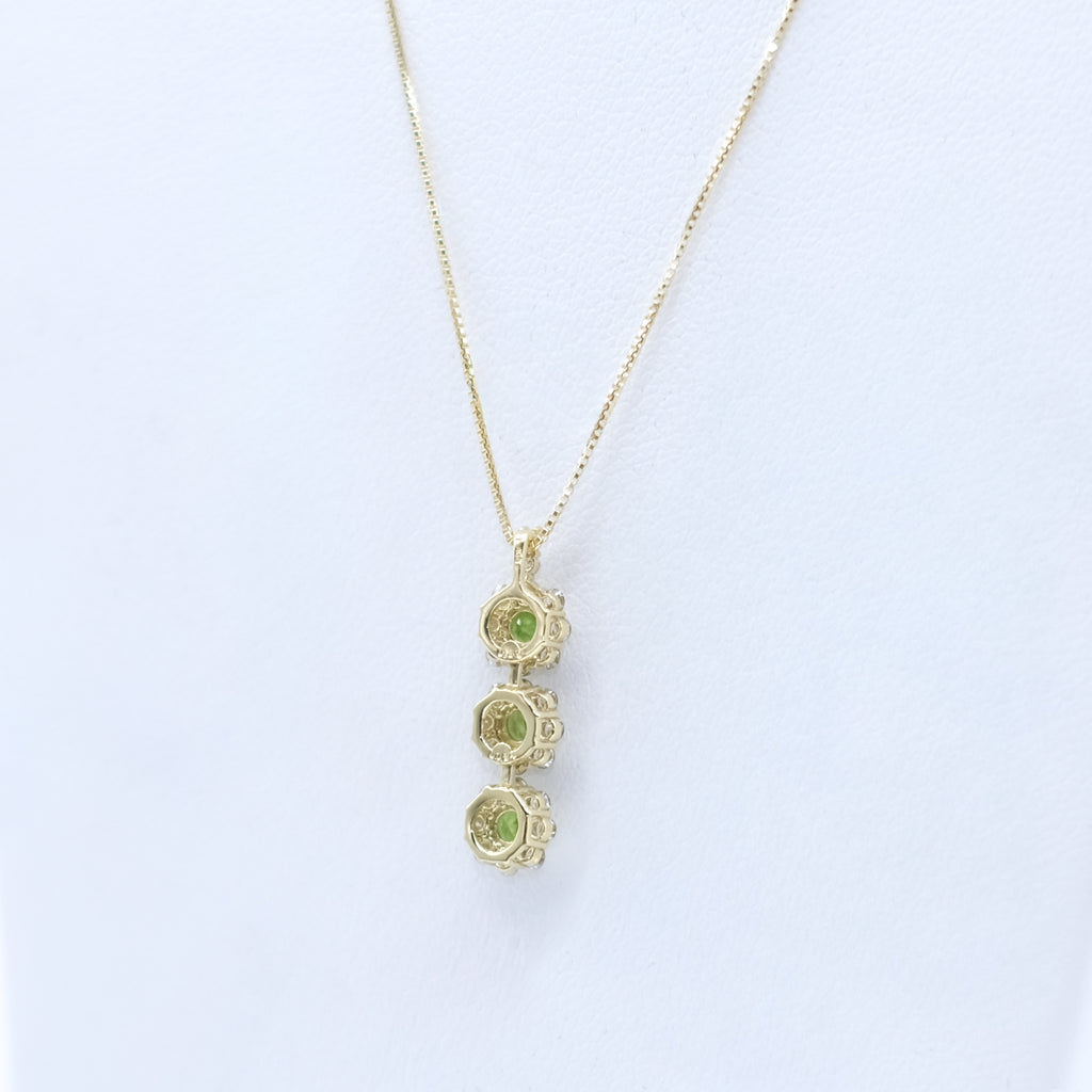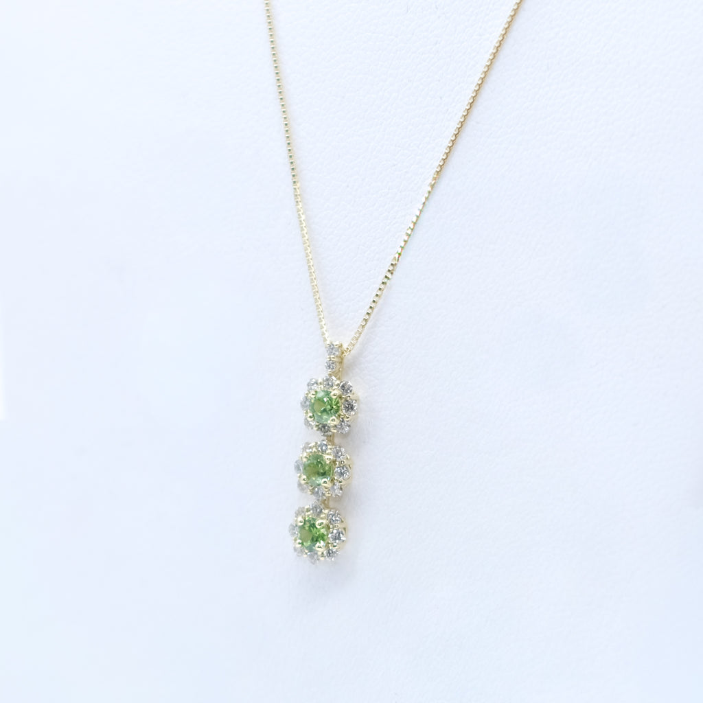 鮮やかなグリーンのデマントイドガーネットを3石も使った贅沢なネックレスです。