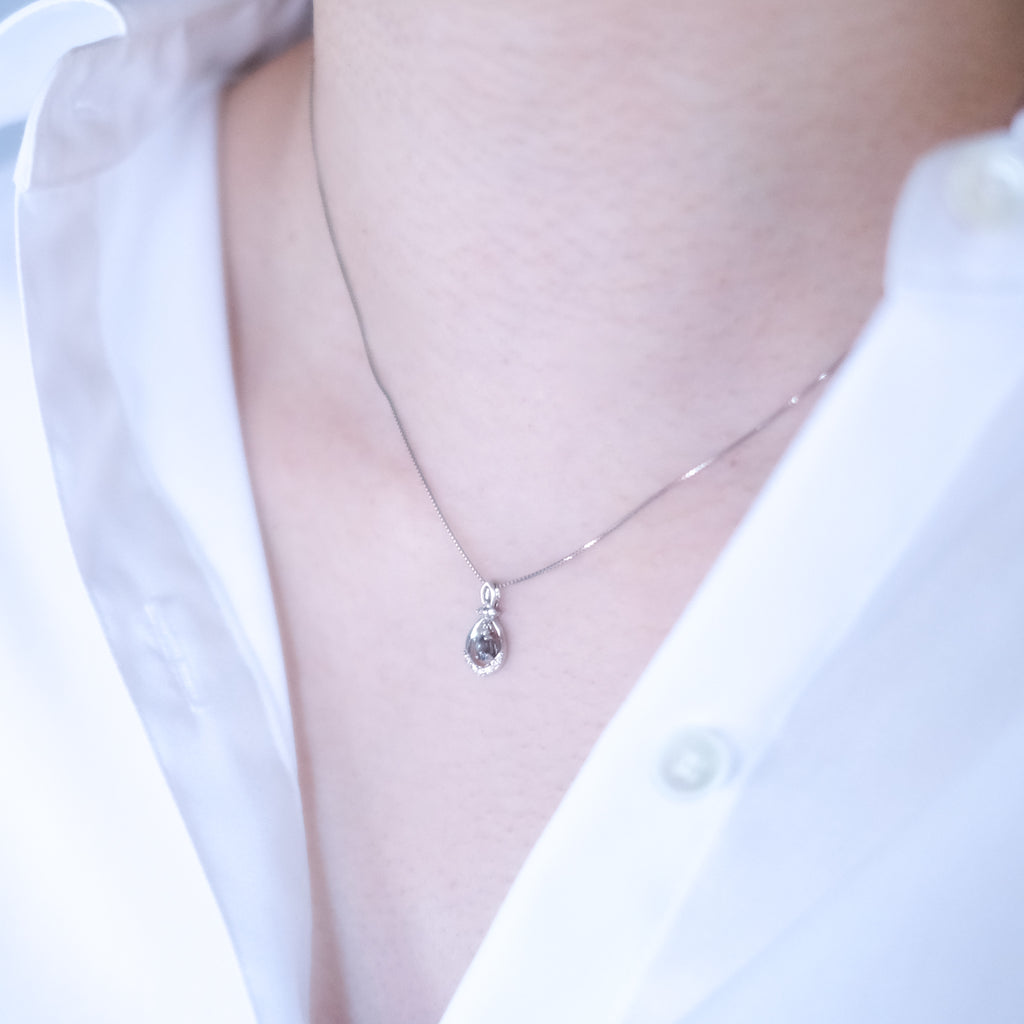 一見すると何色とも言い難い地味な色をしていますが、独特の落ち着いた色は飽きずに長くお楽しみいただけるものです。またダイヤ、ルビー・サファイアに次ぐ硬さを持つため、ジュエリーとして安心して身に着けて楽しめます。