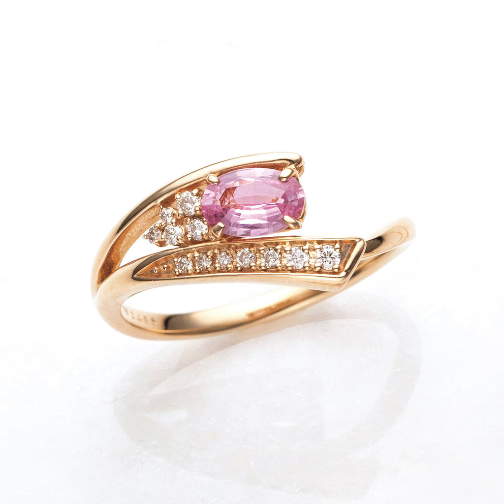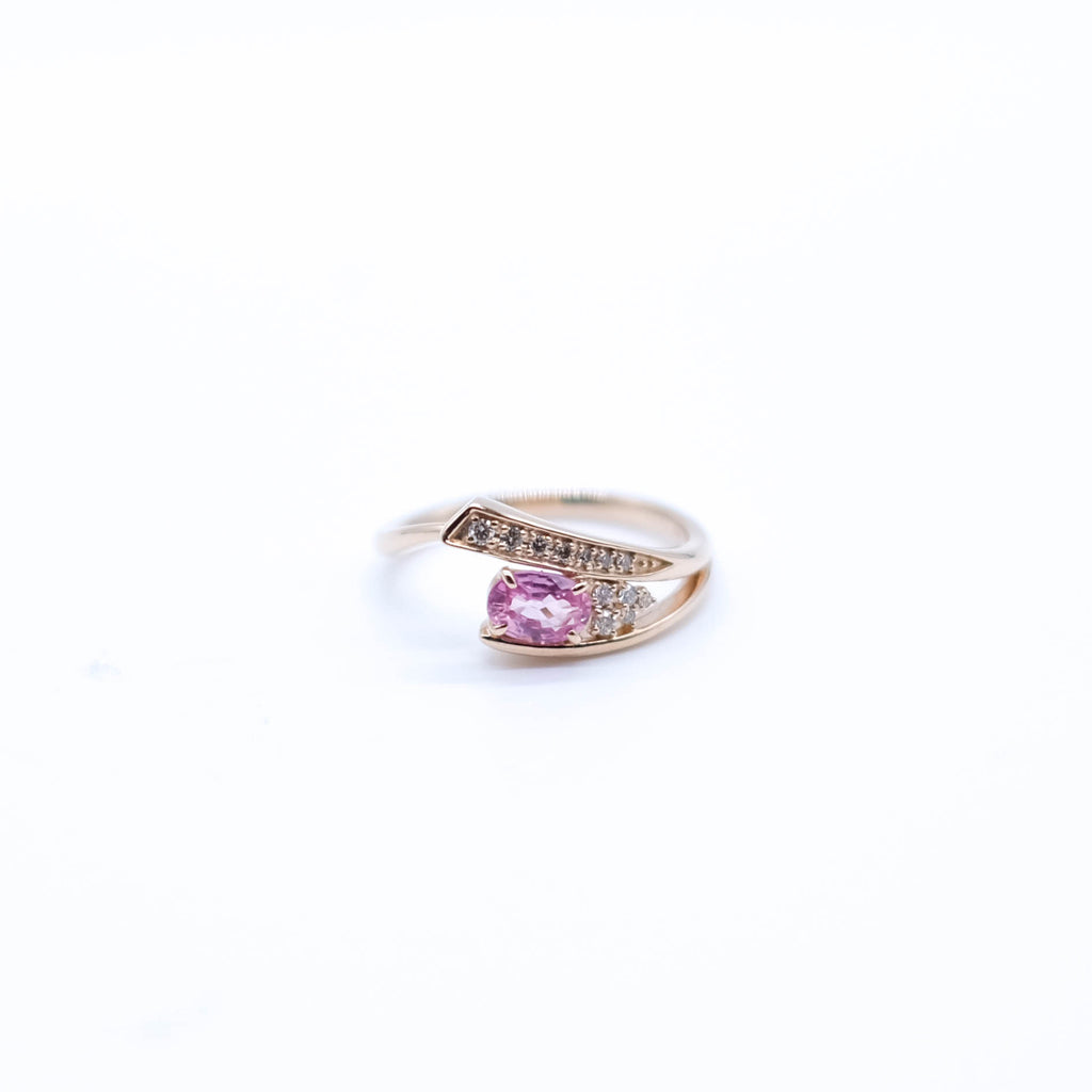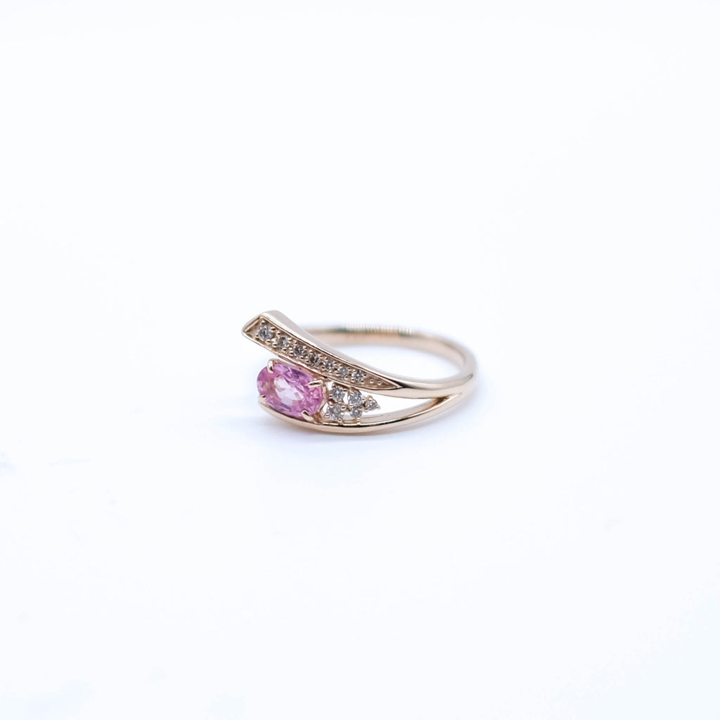0.5ctのオーバルシェイプのパパラチアサファイアを相性抜群の18金ピンクゴールド製のリングにセットしました。