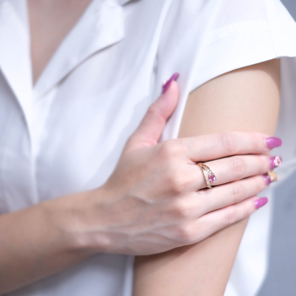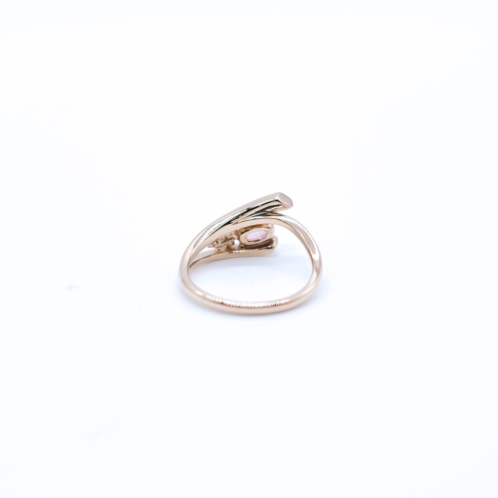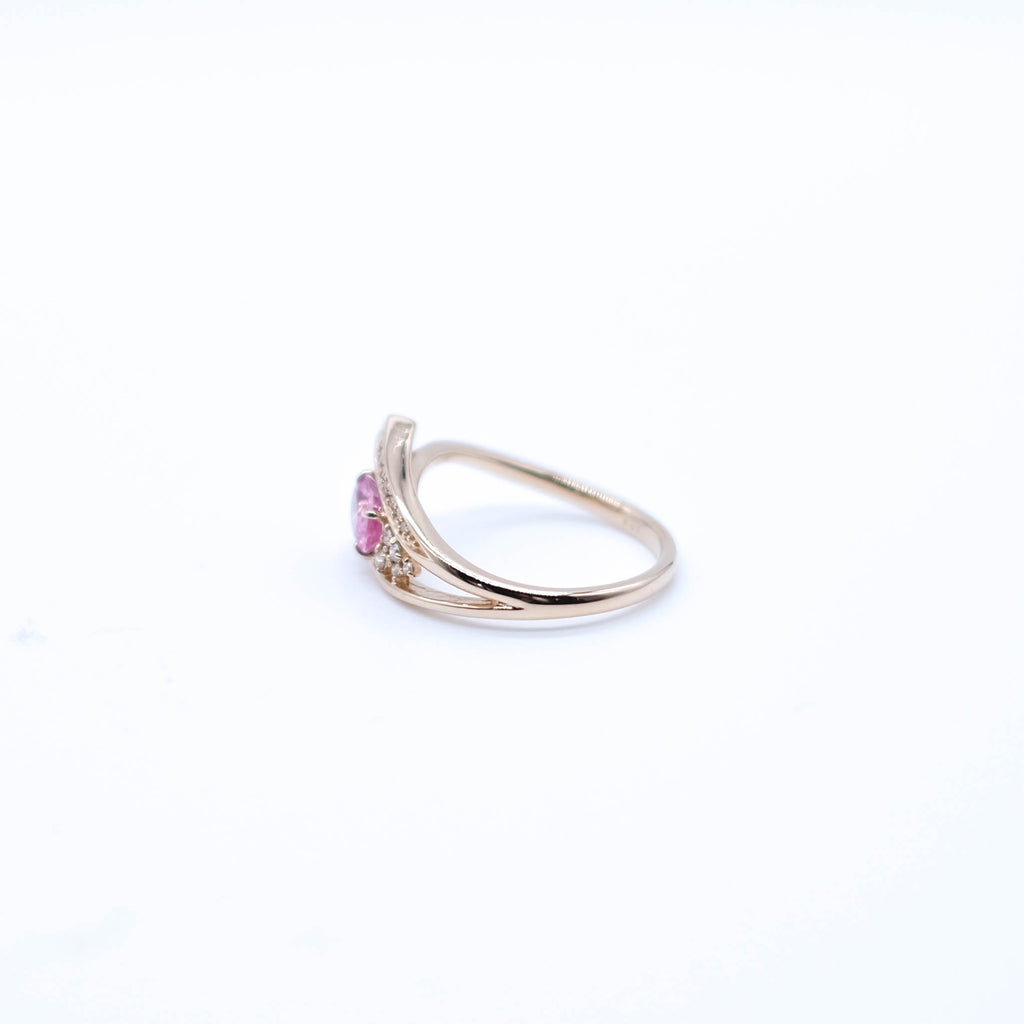 0.5ctのオーバルシェイプのパパラチアサファイアを相性抜群の18金ピンクゴールド製のリングにセットしました。