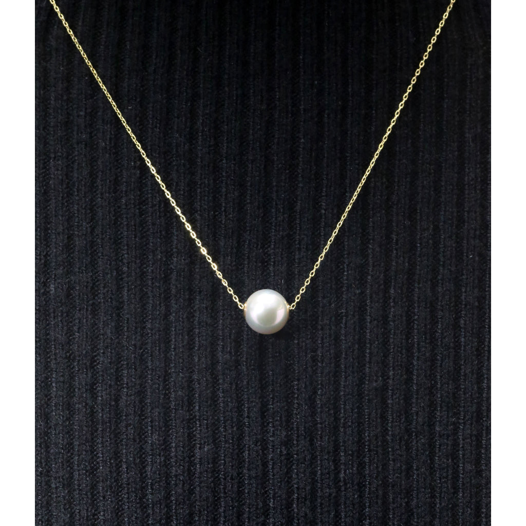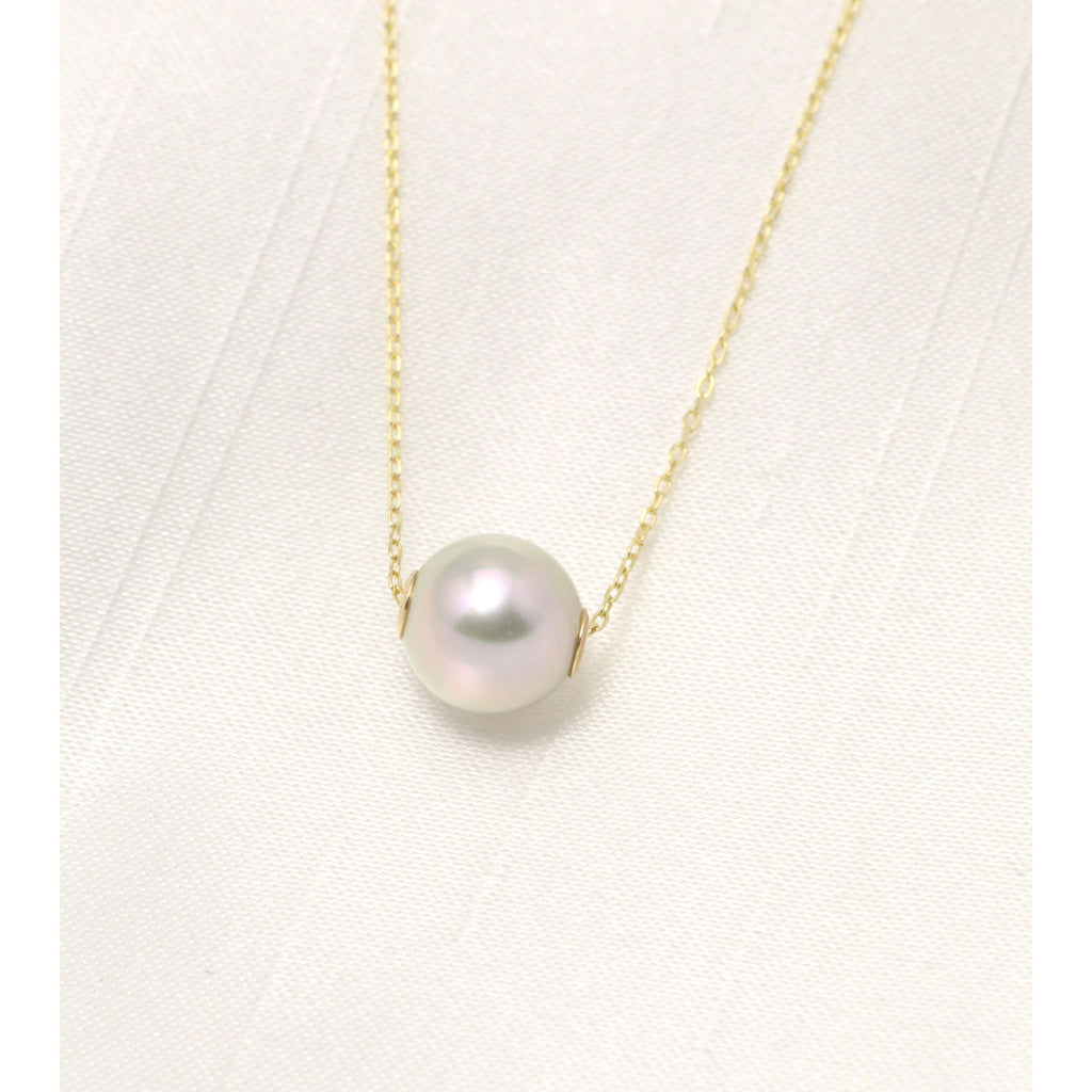 てりの美しい8mmのナチュラルブルー系アコヤパールをそのままチェーンに通したカジュアルなネックレスです。